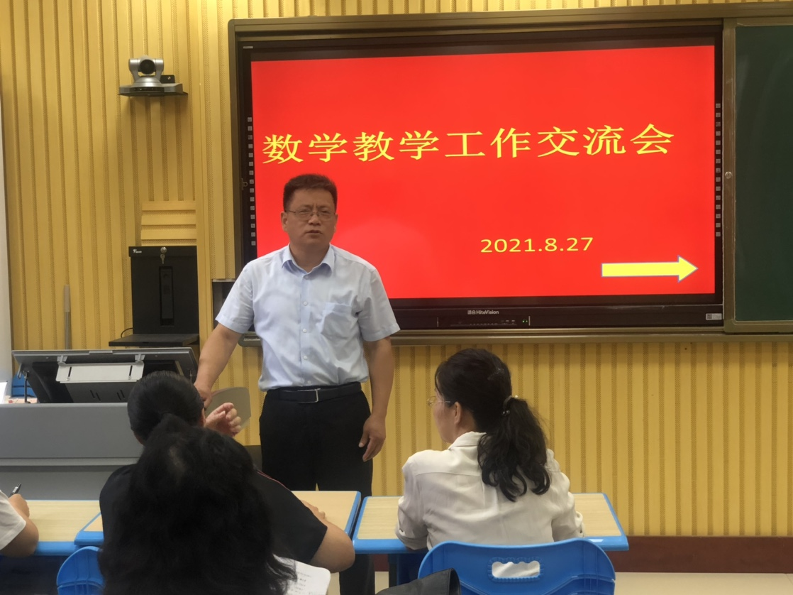 为了落实学校学科教学工作全校一盘棋,早布局早谋划的指导思想,为了进一步提高市一中数学教师教学教研能力,明确新学期学科教学的努力方向。8月27日上午,市一中召开了新学期第一次全校数学教学研讨会,会议由市一中数学教研组长、正高级教师任荣民同志主持,学管处主任董海峰同志,高一年级副主任娄超同志及全体数学教师出席会议,高三年级部主任陈杰同志列席会议。
