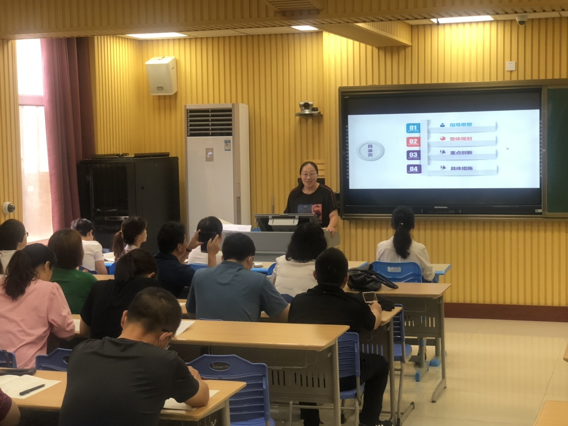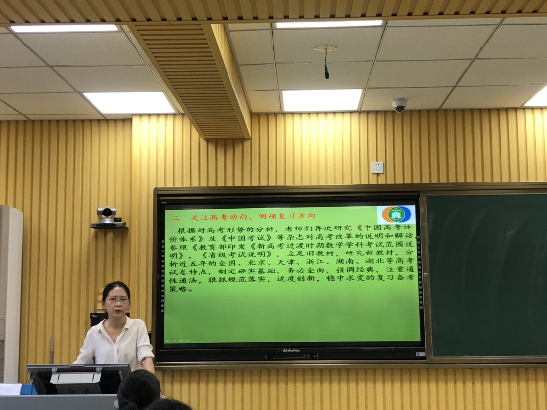 高三教学组长罗丽芳老师作了《2019级高三一轮复习工作计划》的报告,罗老师立足高考评价体系,密切关注高考动向,从指导思想、整体规划、重点创新和具体措施四个角度制定详细的一轮复习计划。同时注重凝聚集体智慧,注重培优补弱工作落实,罗老师的报告体现了高三数学组科学备考、高效备考、前瞻备考的务实精神。