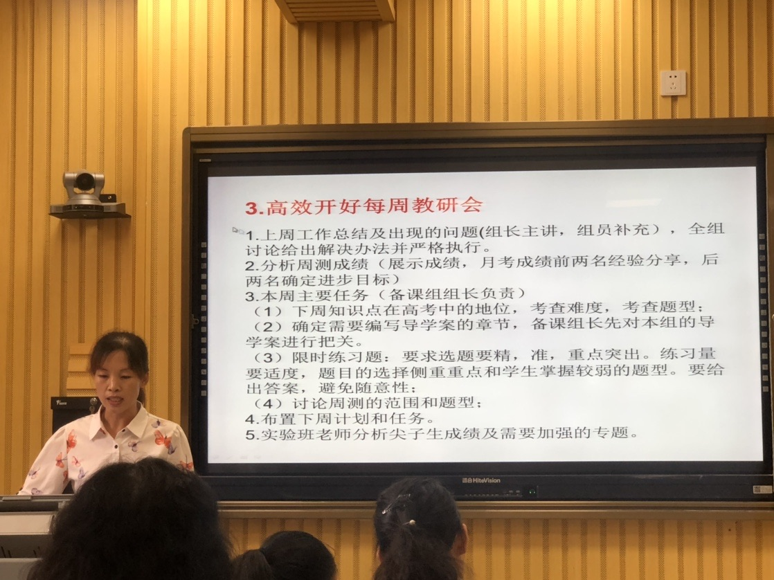 高一数学组长张琳琳老师,分别从高中三年的统筹安排、尖子生的培养、年轻教师的培养等方面进行了汇报 。张老师凝聚全组智慧制定了科学且具体教学工作计划和教研工作计划,明确每位老师的分工,让每一位高一数学组成员都能够有条不紊的展开教学活动,提高工作效率;努力打造精品课堂,力争做人民满意教师。
