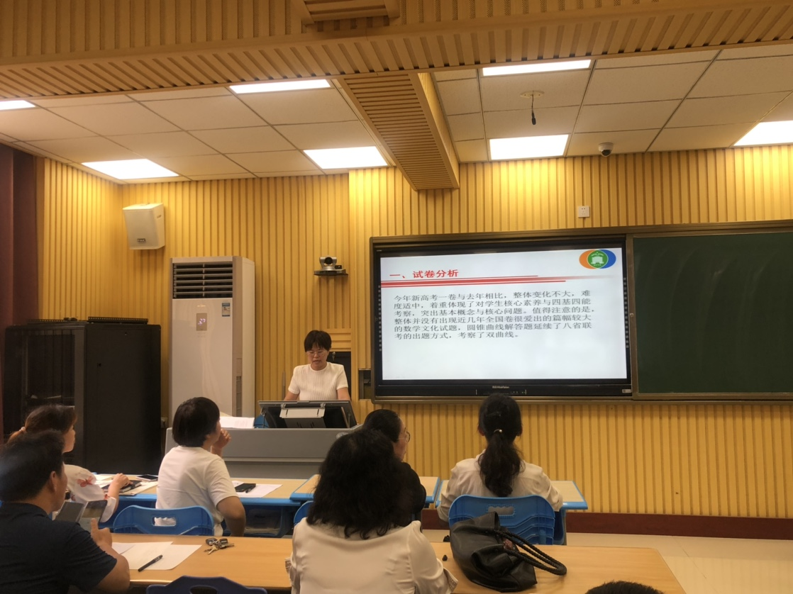 姬秀云老师作了《2021年高考数学阅卷评分细则及注意事项》的报告,姬老师分别从试卷分析,评分细则,规范化答题等角度作了详尽分析,姬老师的报告进一步明确了教师在教学工作的方向和重点。