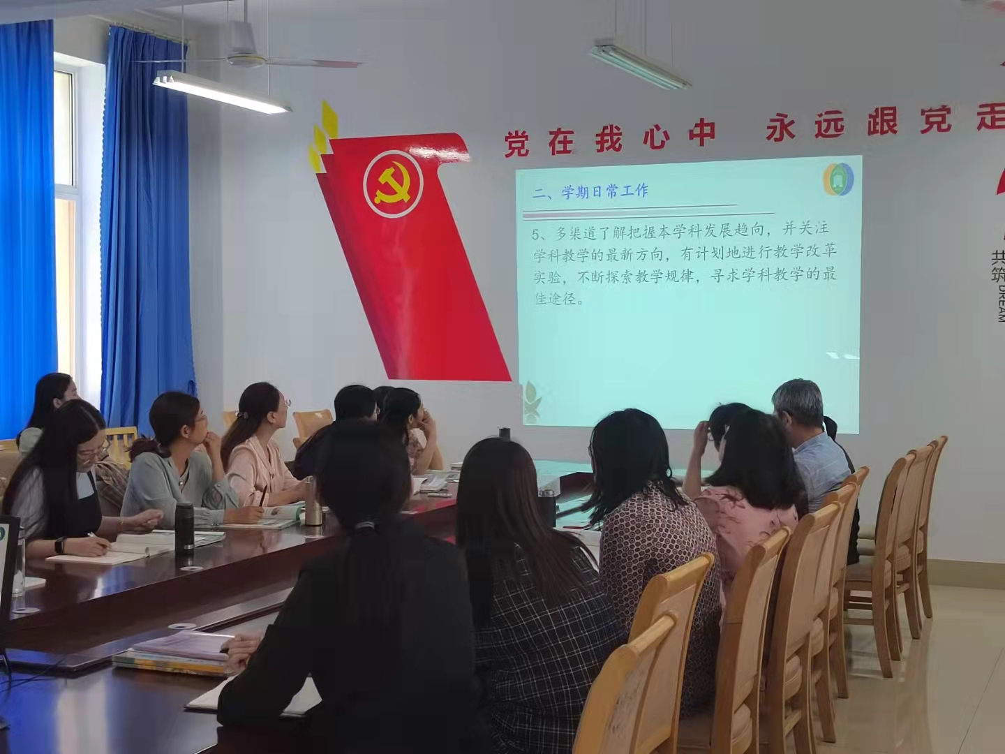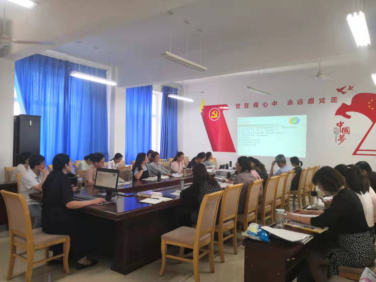 会议首先聆听了英语教研组长尹国红老师的《东营市一中2021-2022学年第一学期英语教研计划》报告,尹老师从学期教研计划和学期日常教研工作两个方面进行了详细地阐述。尹老师的报告既精彩又务实,对于新学期的英语教研工作进行了详细的安排,为新学期英语教研工作的顺利开展奠定了基石。在尹老师的报告结束后,市教科院崔洪兵老师对于市一中新学期的英语教研工作给予了高度的肯定,同时也提出了进一步细化教研工作的建议。