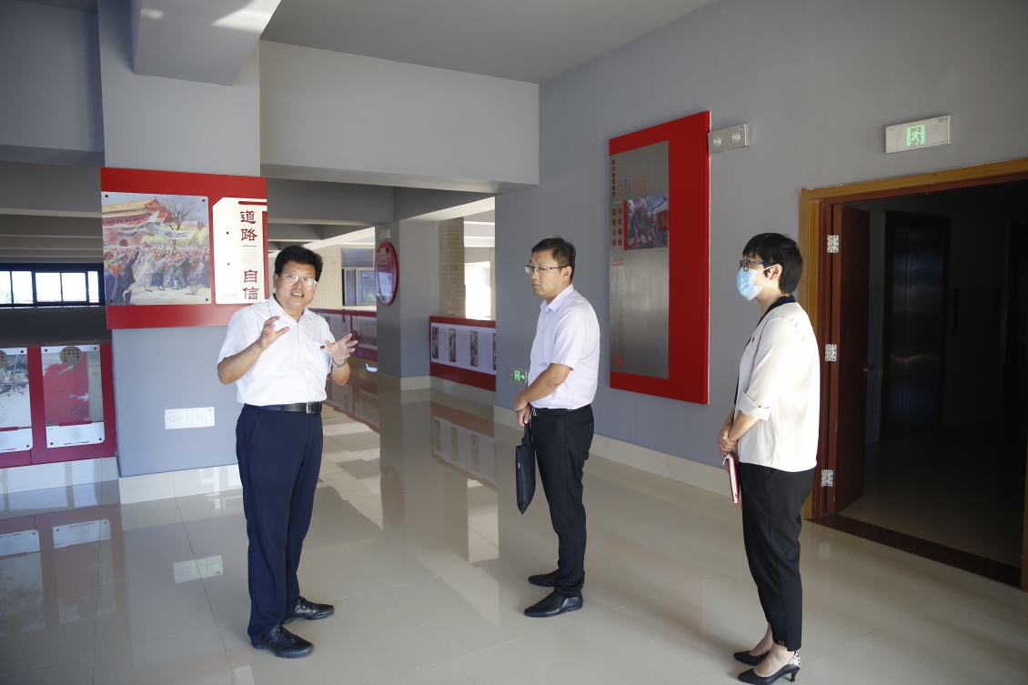9月2日,市委组织部王新景主任一行在教育局杜飞主任的陪同下,对我校党员教育工作进行实地调研,学校党委书记、校长史本泉进行专题汇报。调研组对我校近三年的党员教育培训档案材料进行了认真的核查,并做出高度评价。会前,调研组一行参观了学校的“史诗当歌”党建学馆,肯定了我校在党建工作中的创新和特色。
