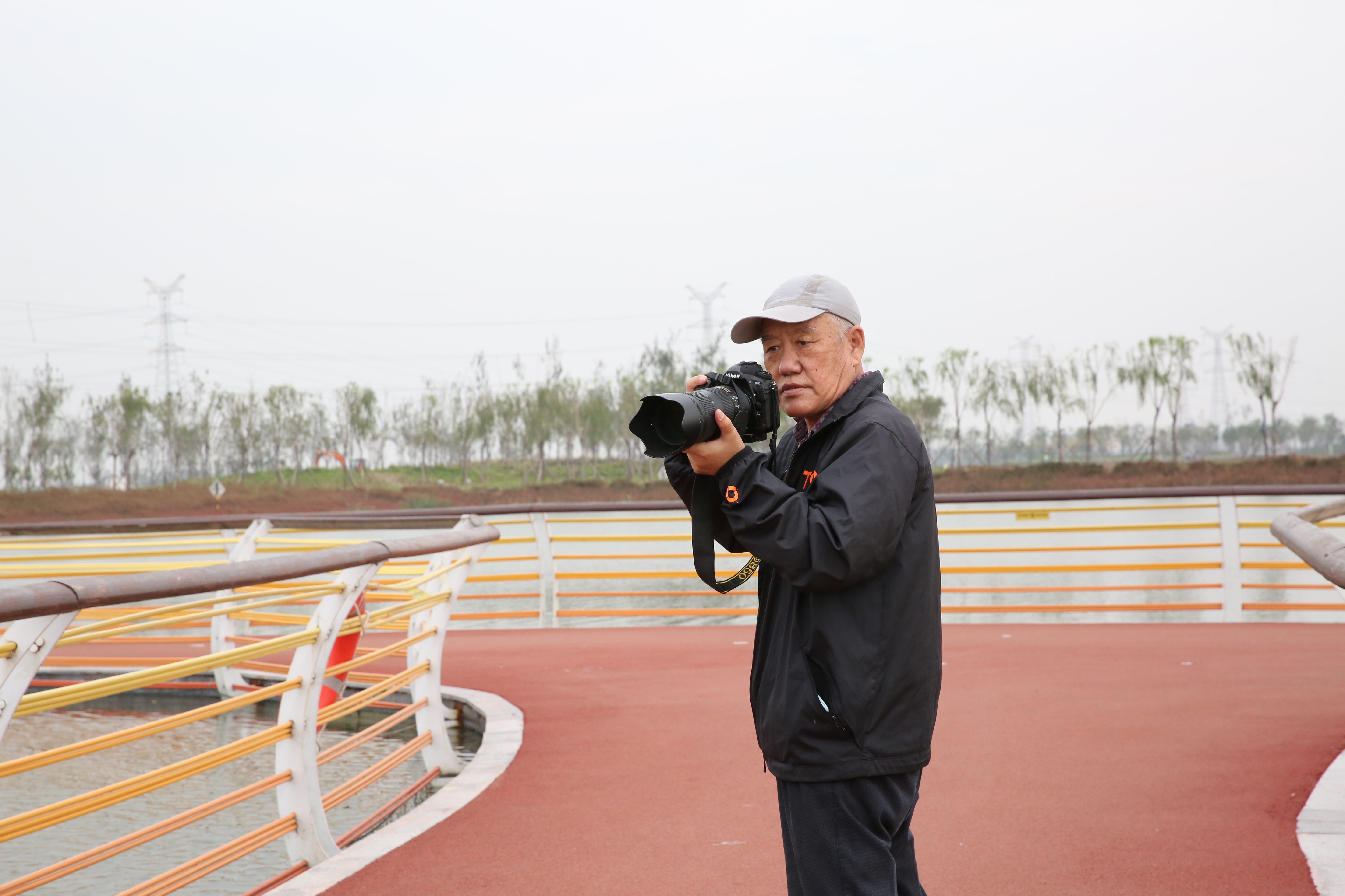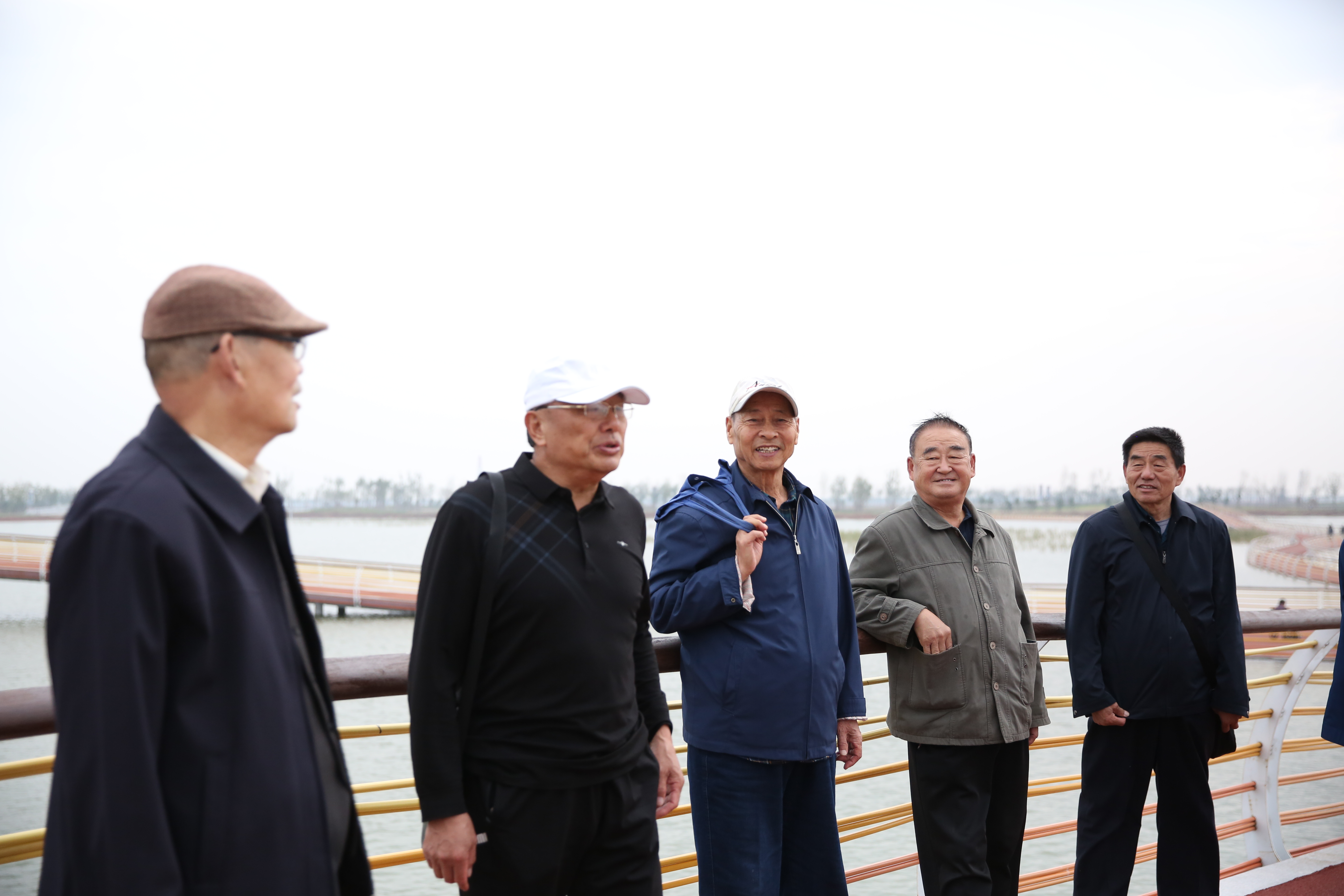 10月14日上午,市一中退休老教师们在工会主席赵自平的陪同下,游览龙悦湖湿地彩虹桥和天鹅湖蓄滞洪湿地。