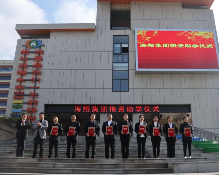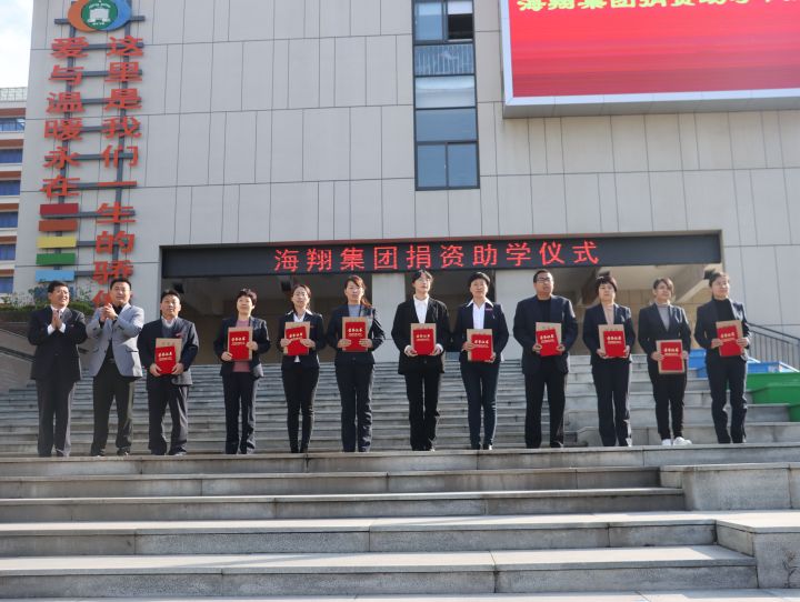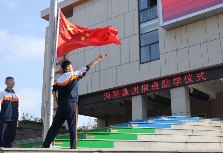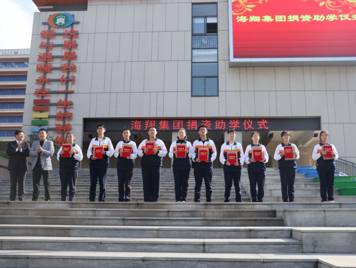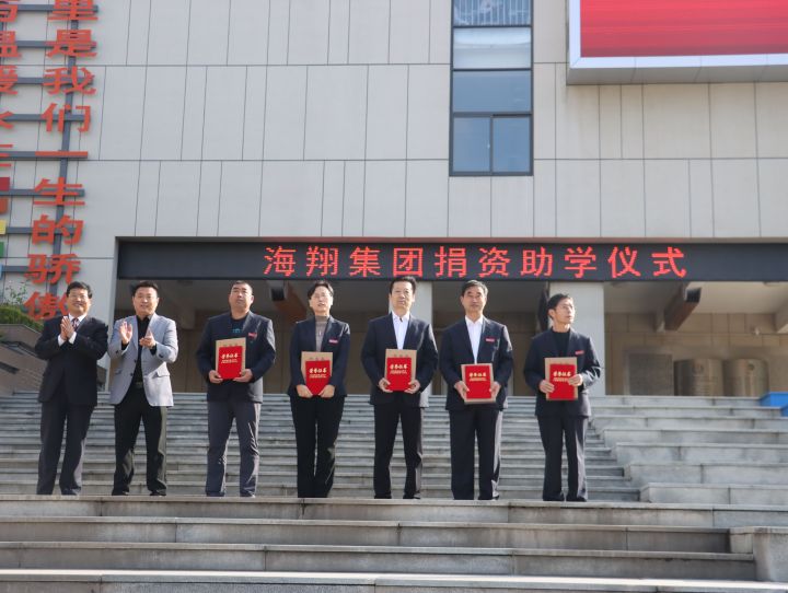 11月1日上午,在学校升旗广场,举行“红烛奖”“励学奖”捐资助学仪式。东营海翔集团领导、市一中学校领导以及全校师生参加了助学仪式。