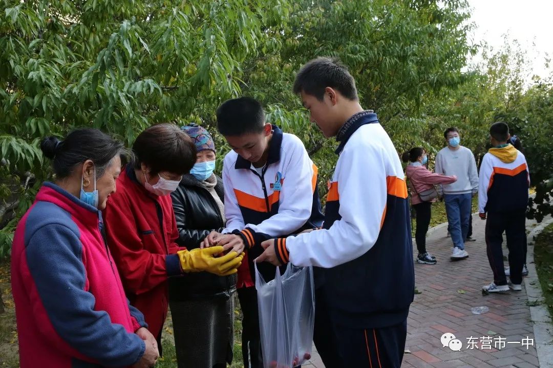 同学们将采摘下来的山楂送给了高三教师和高三的师哥师姐们,祝福他们在未来的一年里,如同校园里的山楂树一样收获累累硕果。又把山楂送给了绿化工人、保洁阿姨、保安师傅和食堂工人,感谢他们为建设大美一中付出的辛勤劳动。
