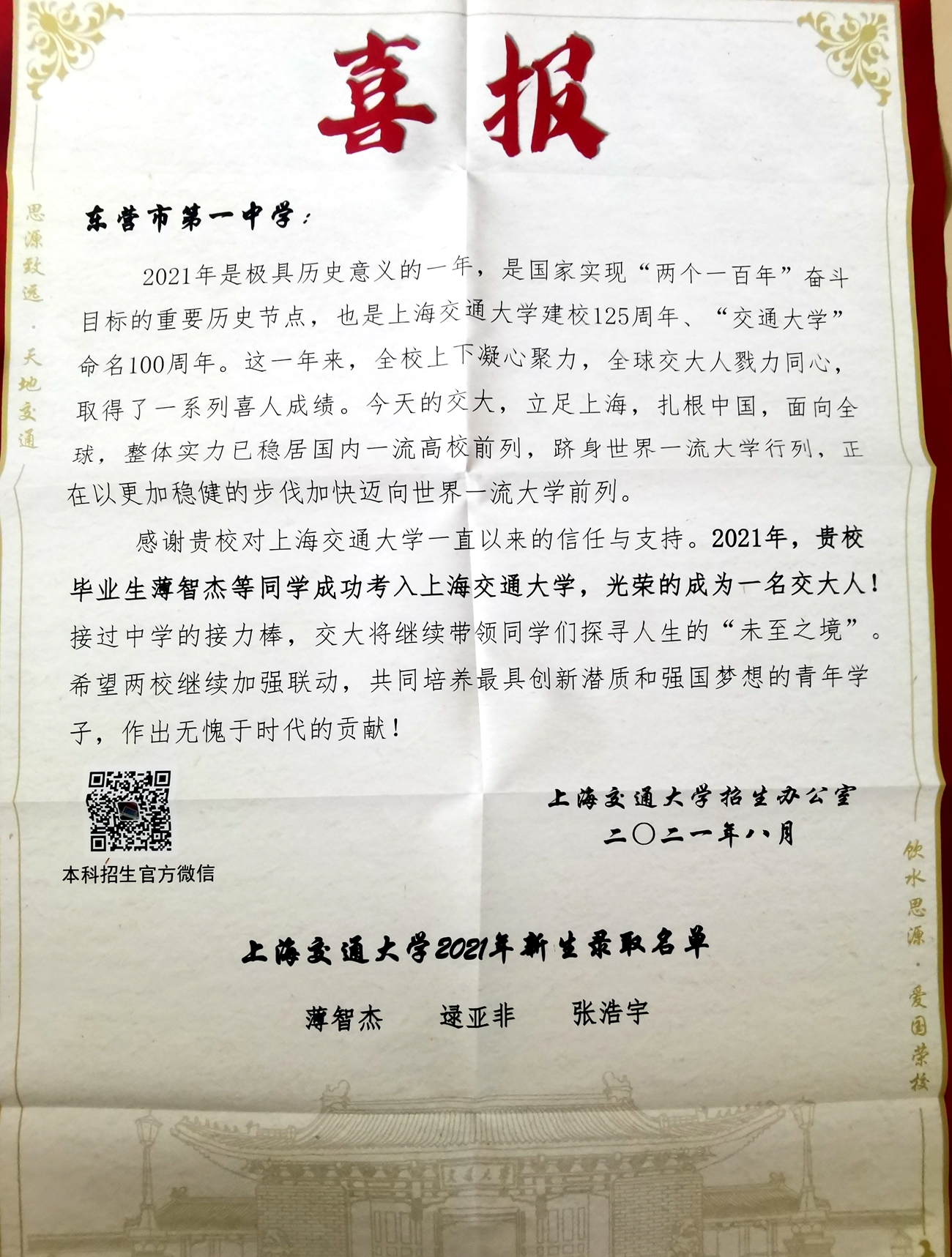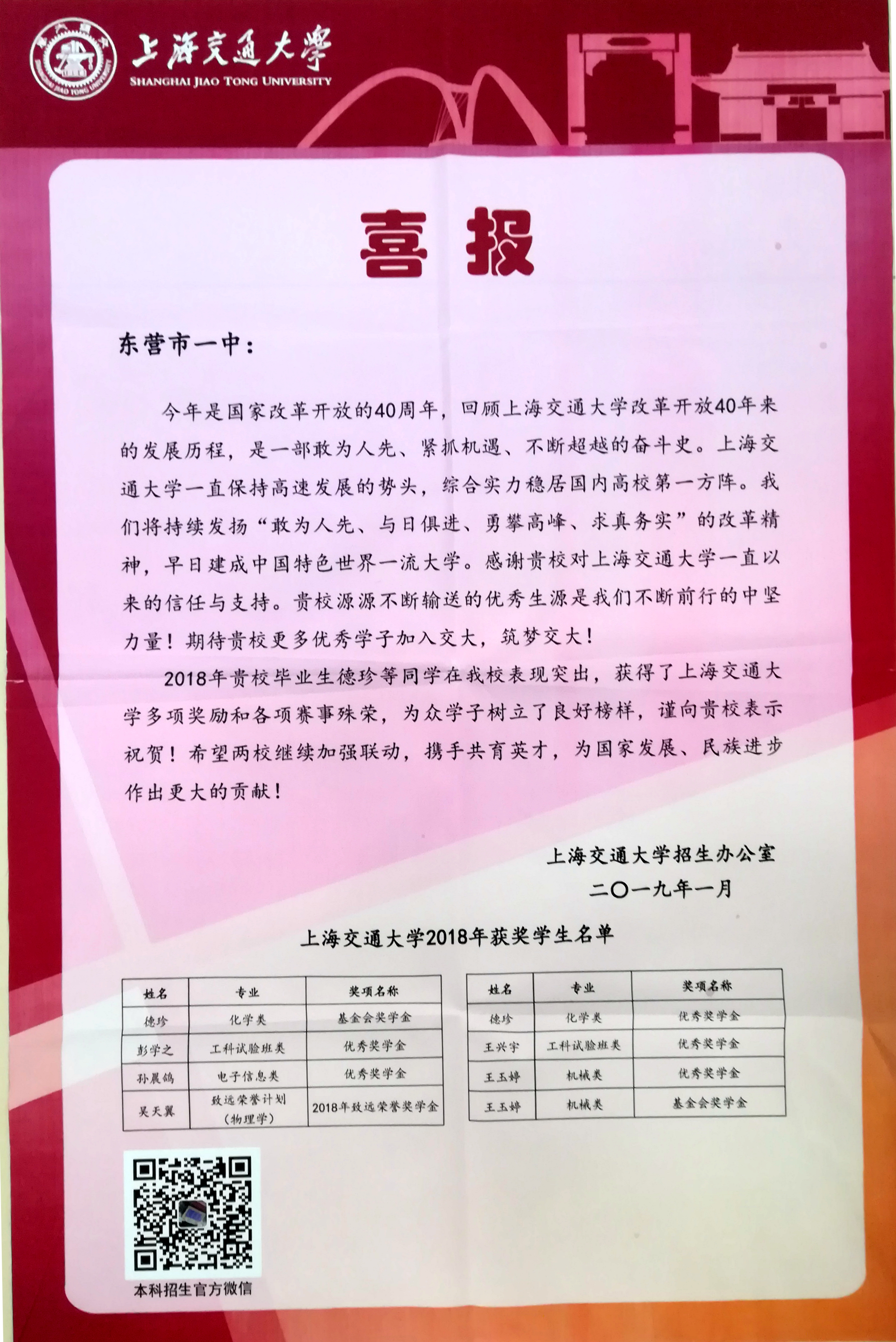 上海交通大学喜报