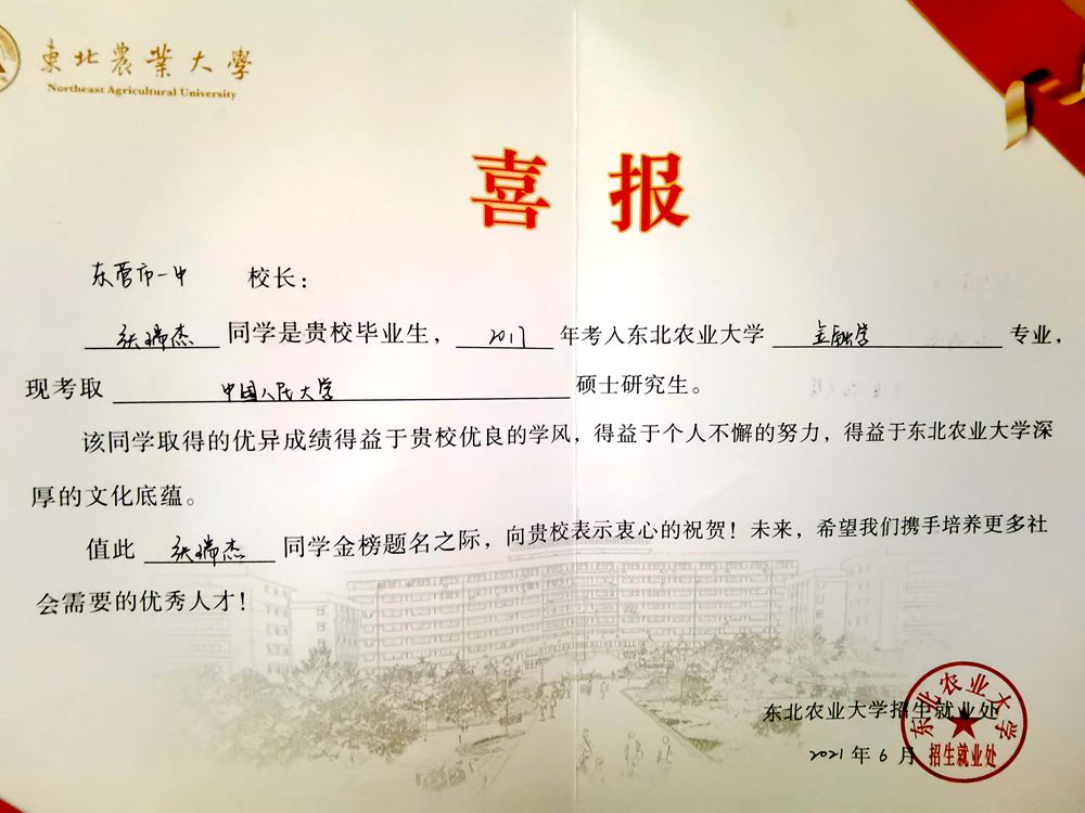 东北农业大学喜报