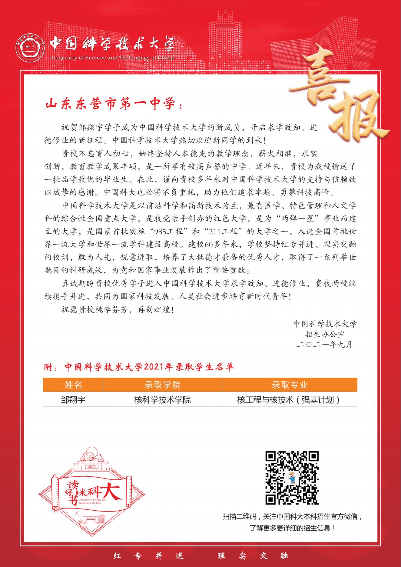 中国科学技术大学喜报