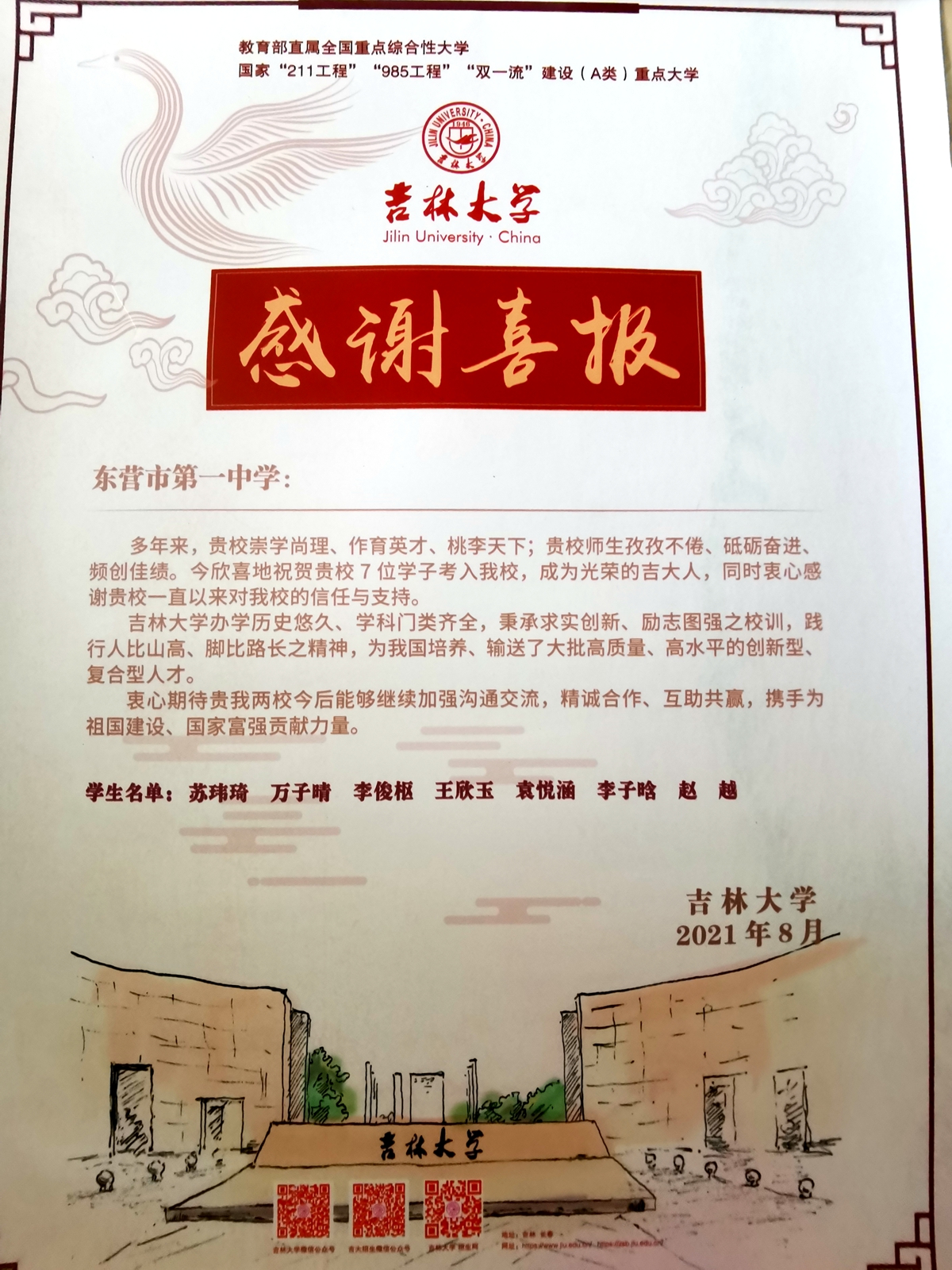 吉林大学喜报