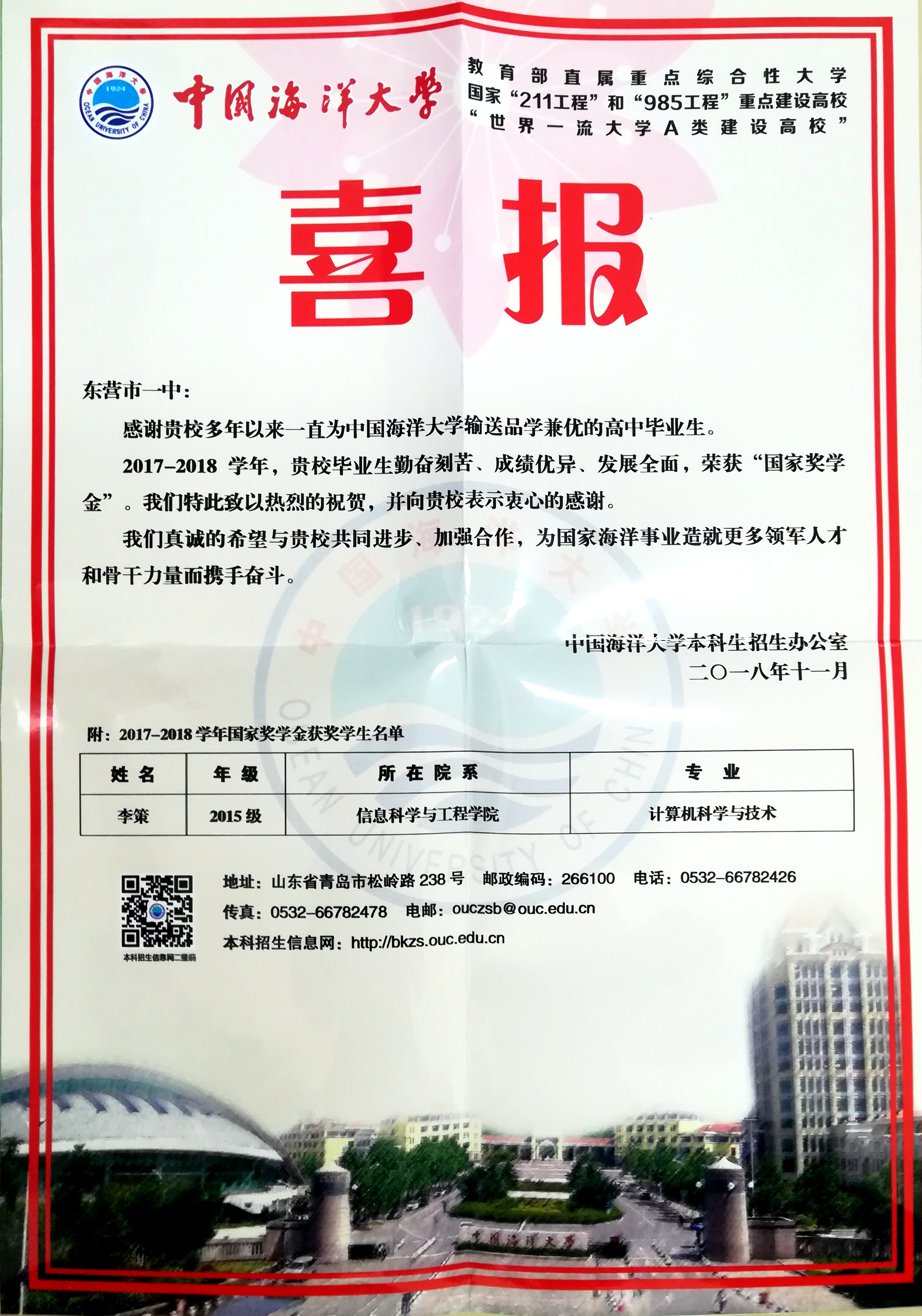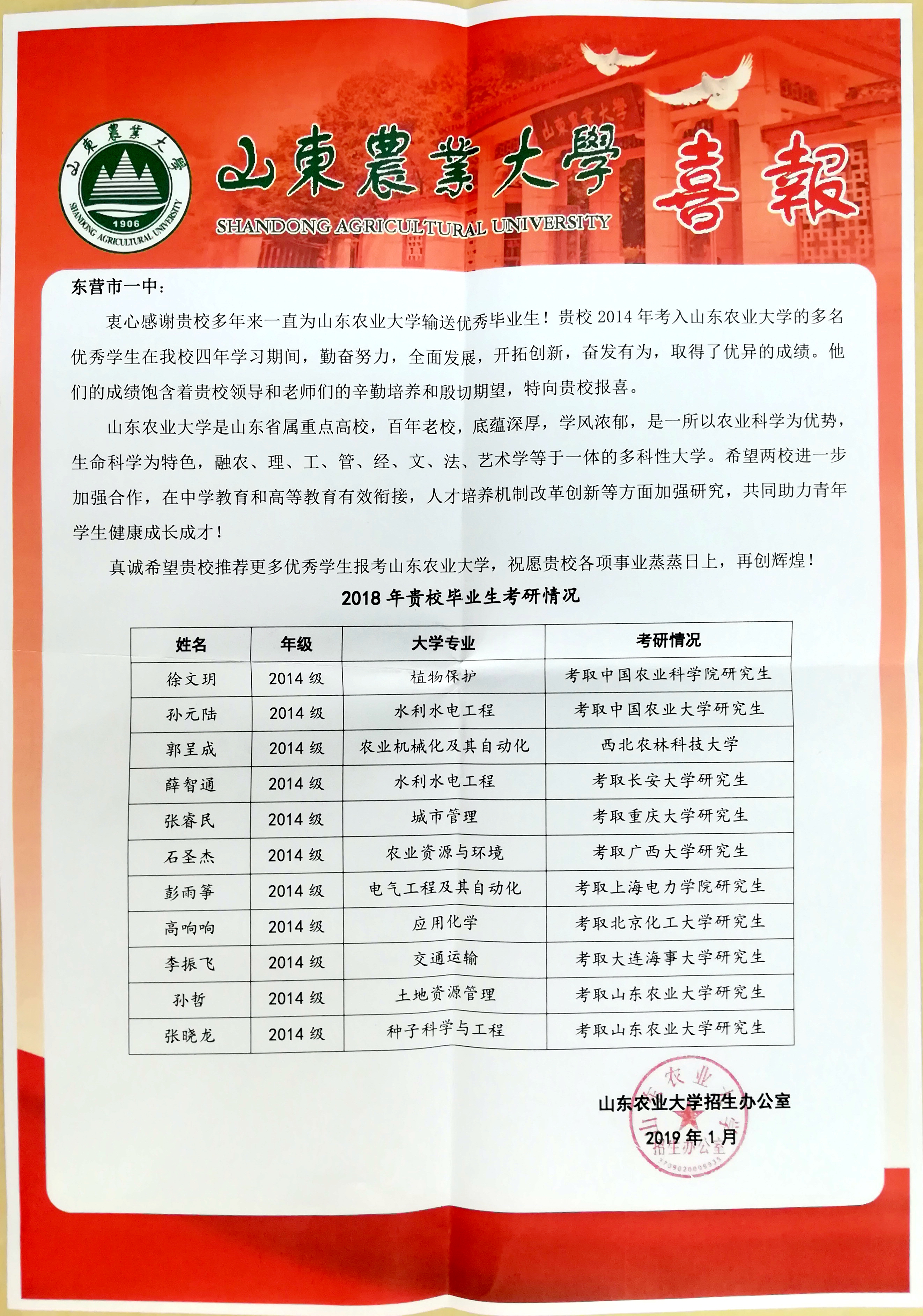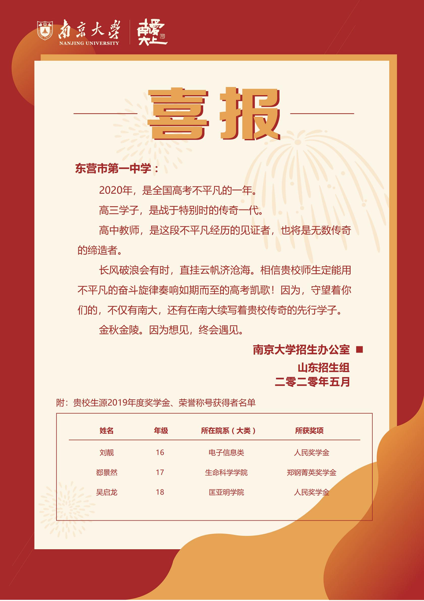 山东大学喜报