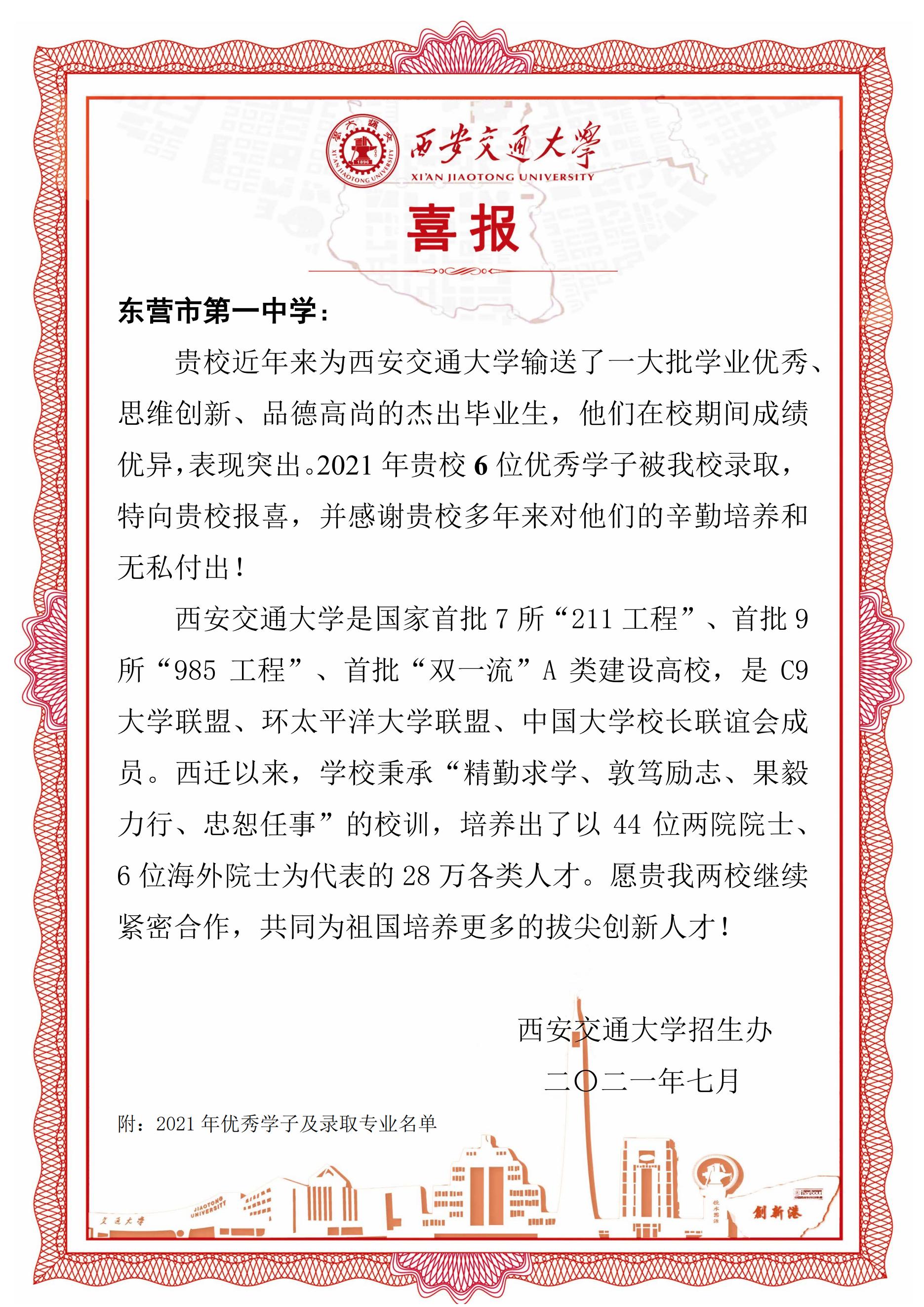 西安交通大学喜报