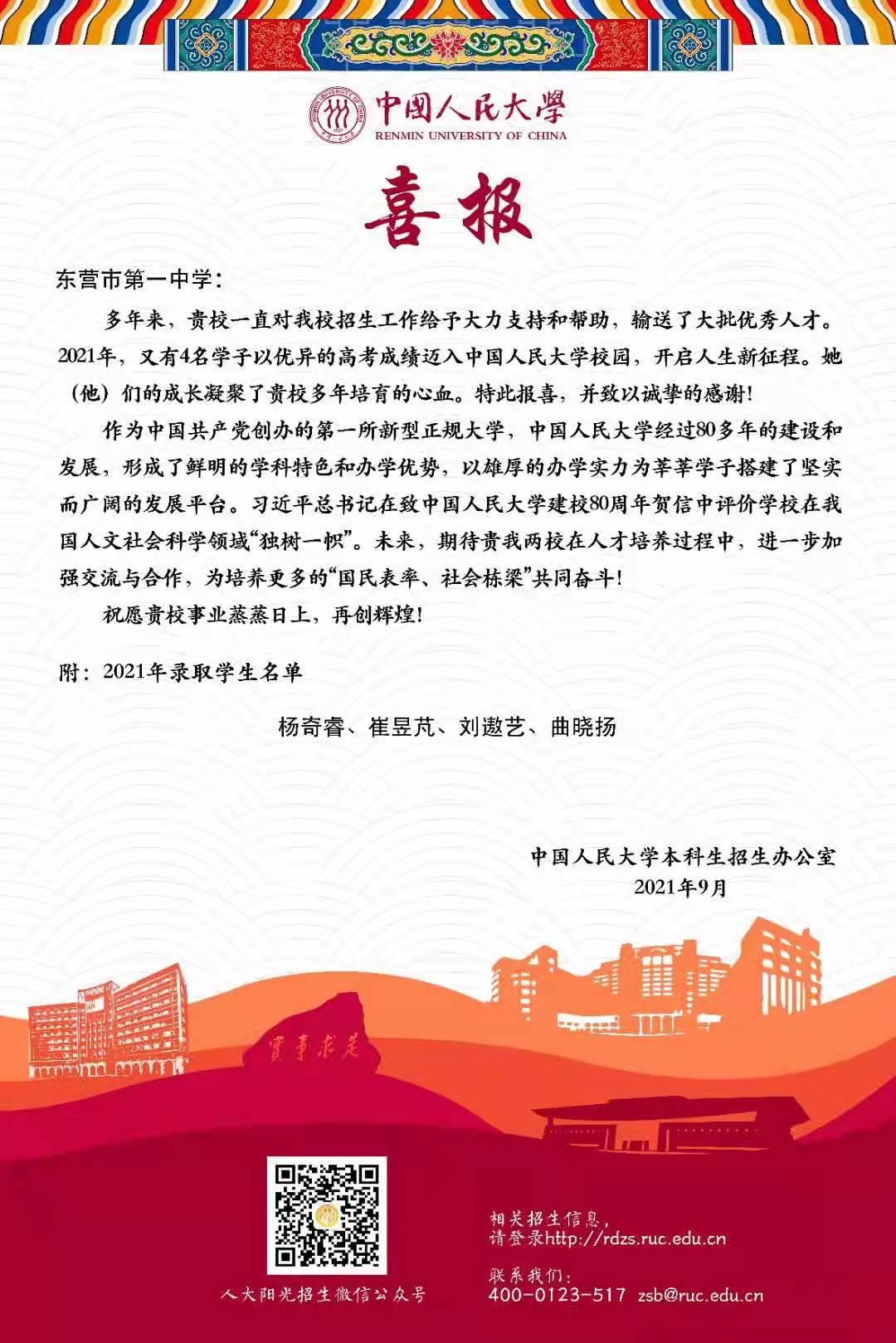 中国人民大学喜报