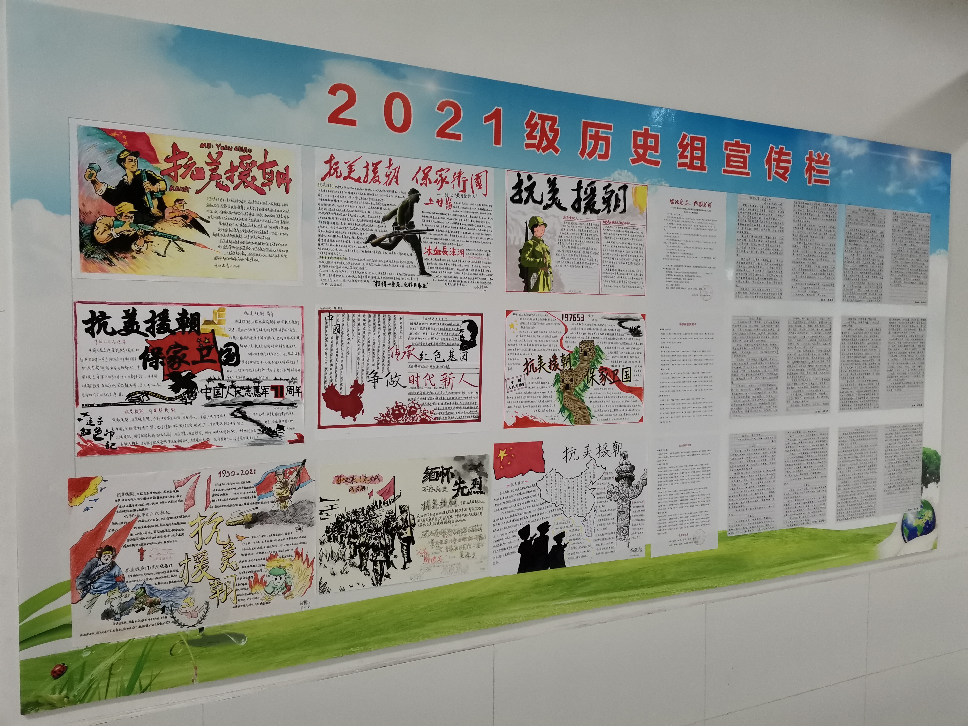大赛以弘扬抗美援朝精神为主题,项目设置灵活,参赛形式多样,2021级学生积极参与,主动探究,兴致高昂,为抗美援朝纪念活动交上了一份份满意的答卷。在历史教研组的共同努力下,经过认真评比,分别评出特等奖、一、二、三等奖若干。陈煜淇等12名同学获得手抄报特等奖,周弈伶等11名同学获得征文特等奖。