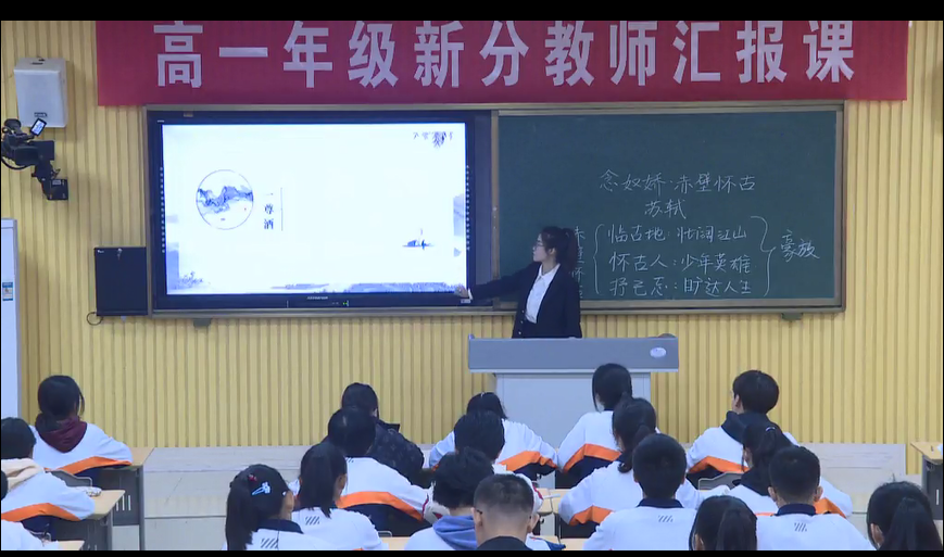 陈凯玥老师执教的《念奴娇·赤壁怀古》带领学生通过反复诵读体会作者所写豪景、所慕豪杰和所抒豪情,从而总结出苏轼的豪放诗风,理解学习本词写景、咏史、抒情相结合的方法。张丹童老师执教的《永遇乐·京口北固亭怀古》通过给学生搭建“支架”,分析该词中涉及到的有关孙权、刘裕、刘义隆、拓跋焘、廉颇的5个典故,并总结这些典故所体现出的情感。