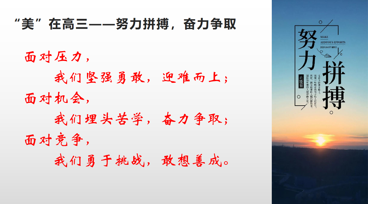 因为这样的爱,2019级部于11月21日召开了“做美丽女孩,为大美一中代言”的主题班会。师生合力,谈美论美,彼此成就更美的自己、更美的市一中。