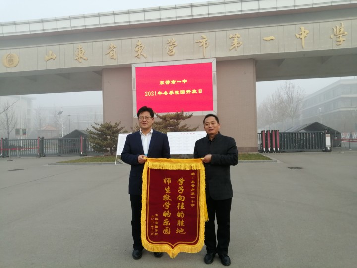 为了向市一中的领导、老师们表示感谢,祝福市一中越来越好,校长赵文刚将题有“学子向往的胜地 师生敬学的乐园”的锦旗赠送给市一中,市一中教务处主任李衡斌代表学校接收锦旗。我校学生代表刘嘉禾为高一学长魏铭芝送上了感谢信。