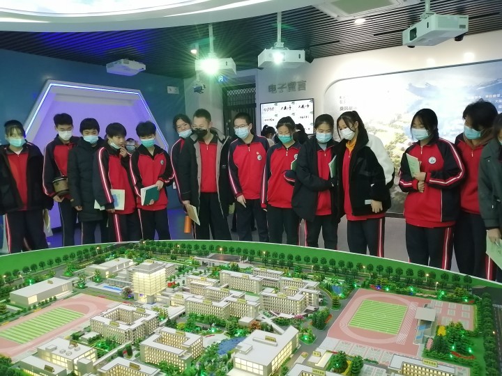 进入校园,九年级师生在市一中老师的带领下分组参观了党史学馆、校史馆、艺术馆、图书馆、物理实验室、化学实验室、生物实验室、历史地理实验室、餐厅、宿舍、教室、体育馆等。