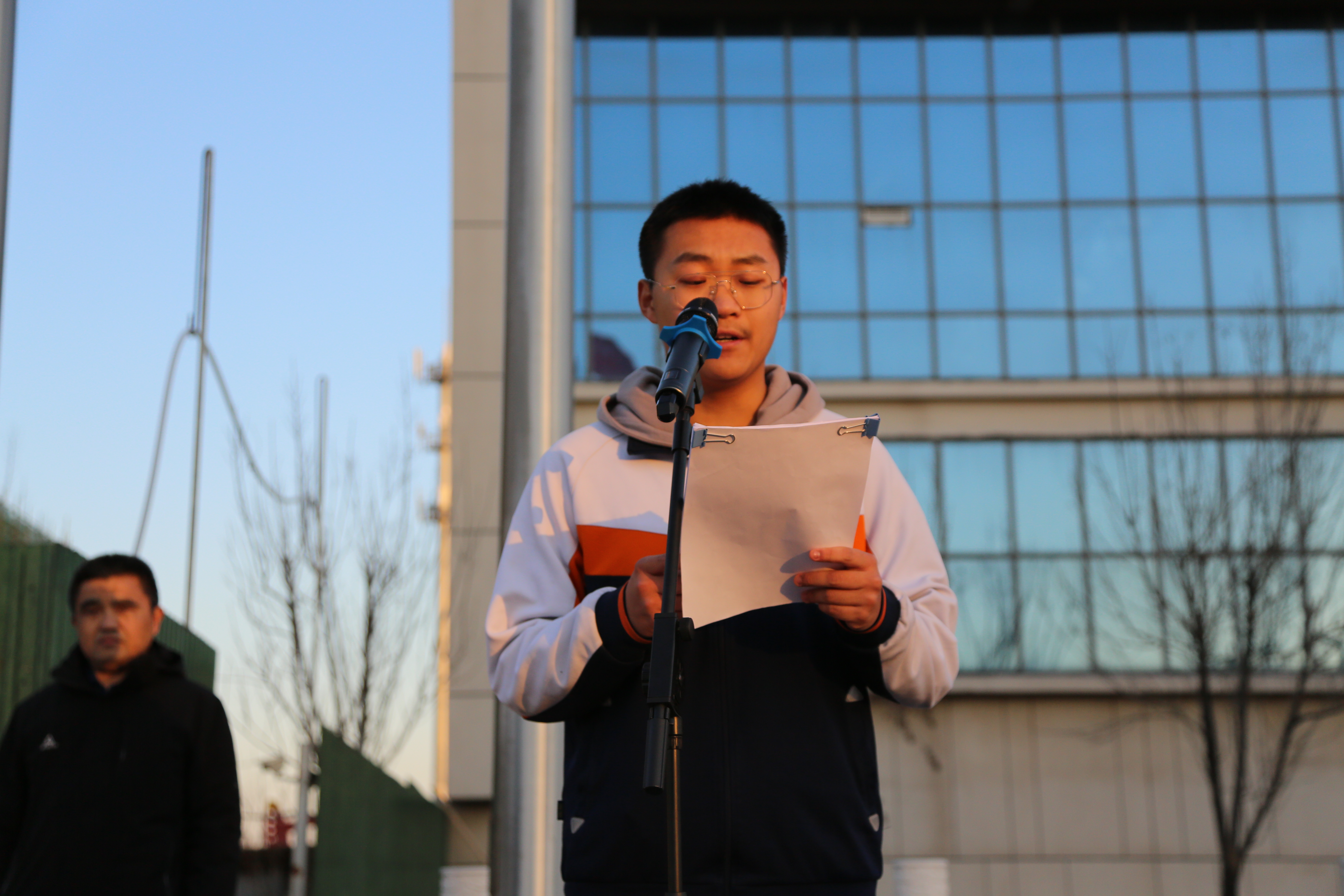 旱地龙舟比赛结束之后,举行龙舟捐赠仪式。学生会体育部部长李中源同学代表2019级学生正式将这些旱地龙舟捐赠给学校,表达了学生们对学校的感激之情,同时坚定了全心投入学习的决心。学校体育处主任尚桂安代表学校接受捐赠,尚主任对2019级高三学子的爱心表示感谢,并勉励同学们激扬青春、发奋努力、勇创佳绩!学生代表张柯进行高考倒计时150天励志发言,激励大家紧握命运之剑,用冲刺点亮梦想,不负青春,无愧于心,无愧于己。