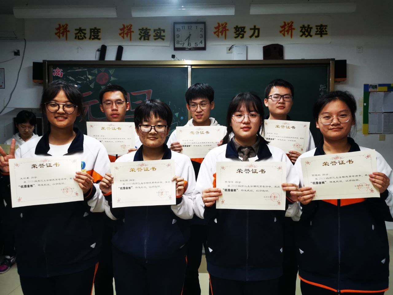 表扬和鼓励也是学生进步不可或缺的,在喜迎元旦之际,有的班级借此机会对月考中进步较大和稳定发挥的同学进行表彰,以榜样来引导大家一起向新的目标、新的征程发起进军。