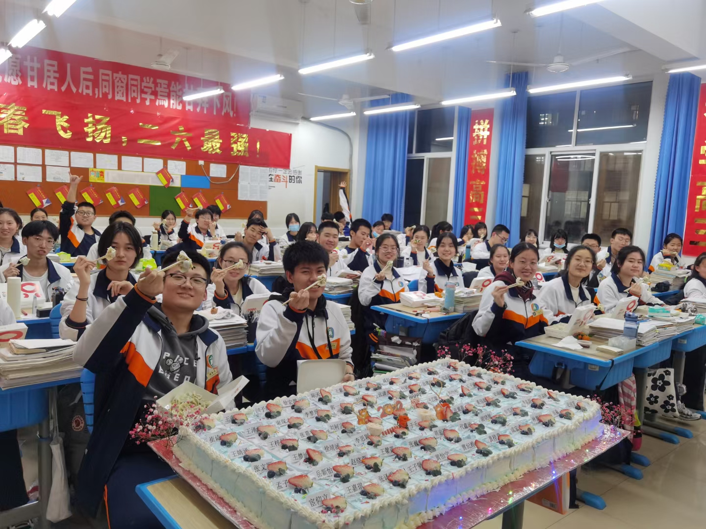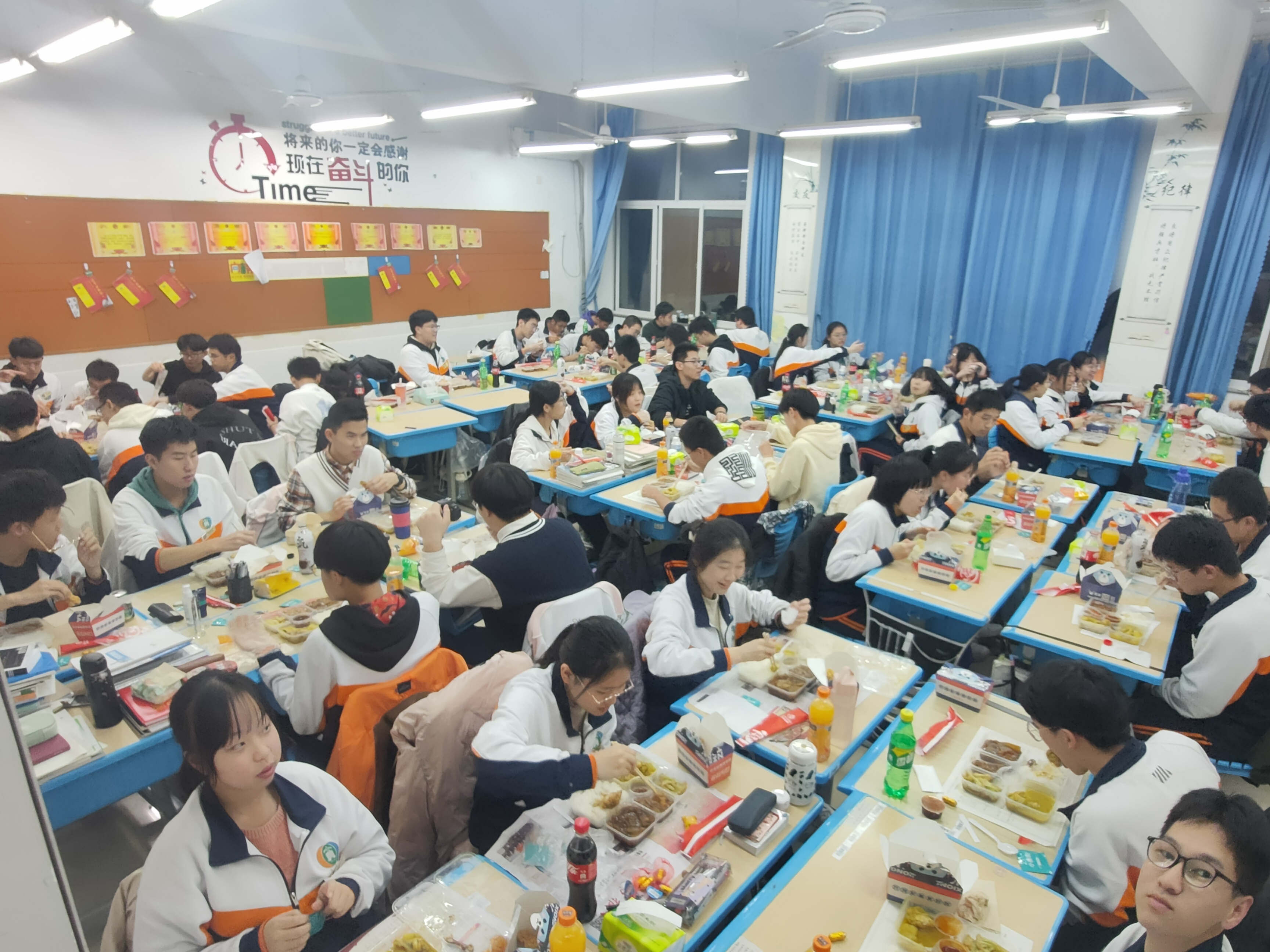 吃饺子是迎元旦必不可少的节目,在如家人一般的团聚中,看到我们每一个同学在奔向高考的旅程中,都不会是一个人在战斗,身边有你的家长,你的老师,你的同学,他们赐予我们力量,给予我们鼓励。