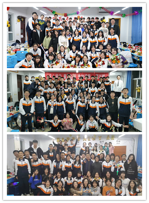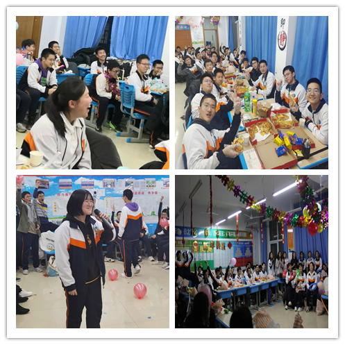 下午4:20开始,高二各班积极行动,设计黑板报、张贴窗花、粘贴拉花、点缀气球......把教室装扮一新,营造了浓浓的节日氛围。各班家委会及热心家长为学生送来了音响设备、水饺、盒饭、水果等,家校联手,共同助力孩子快乐健康成长。