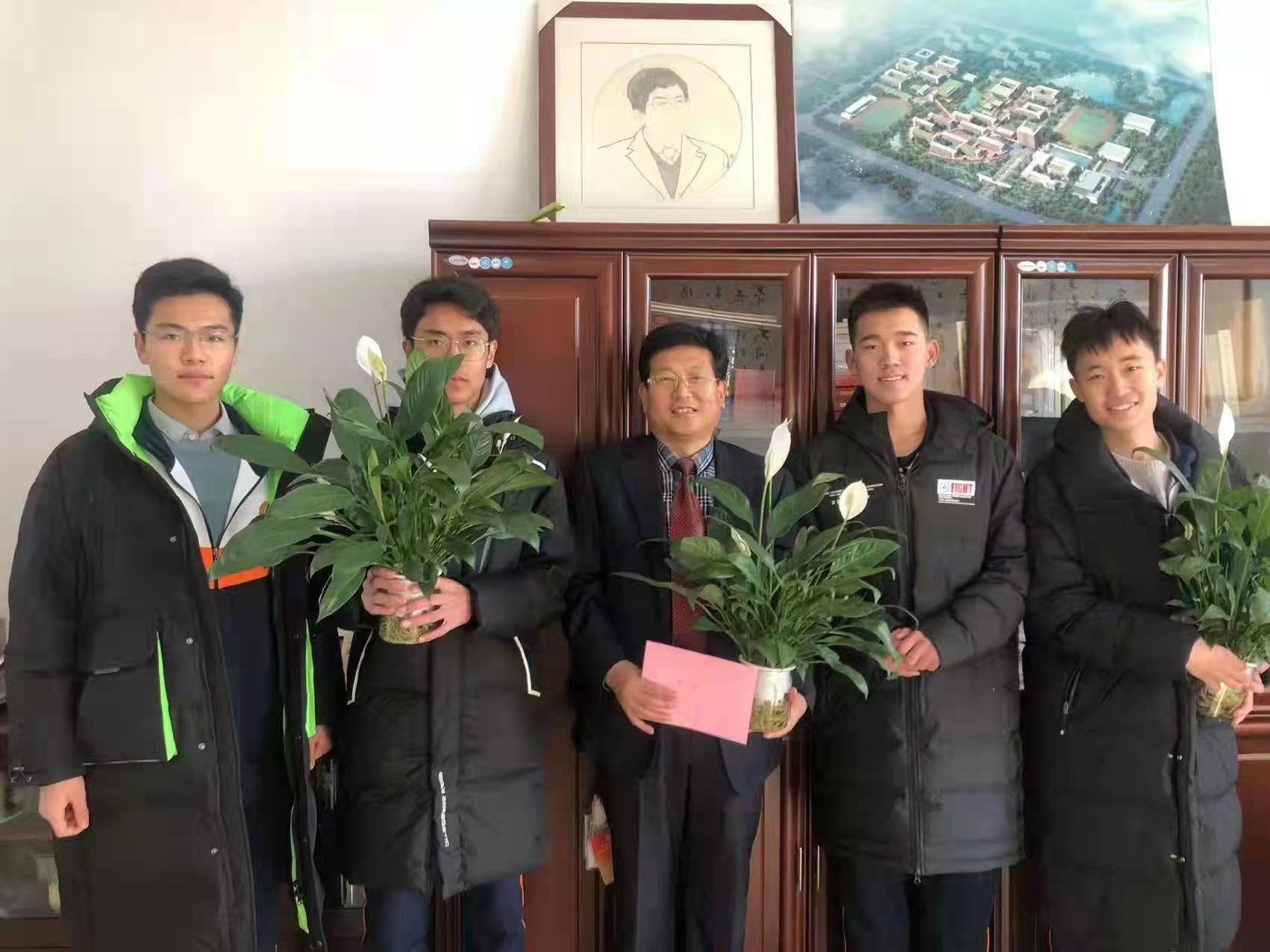 在这辞旧迎新之际,史本泉校长带领学校中层领导也来到学生们中间,与同学们一起共庆元旦佳节。李士刚副校长和巩欣锋主任走进高二体育班,为体育特长生送上节日的祝福和殷殷的期望,鼓励学生努力学好专业课和文化课,发扬拼搏进取的精神,再创一中体育新辉煌。康述志主任和李衡斌主任走进高二班级为学生送上祝福,表达了学校对学生们的关心和爱护,并与学生欢乐互动。