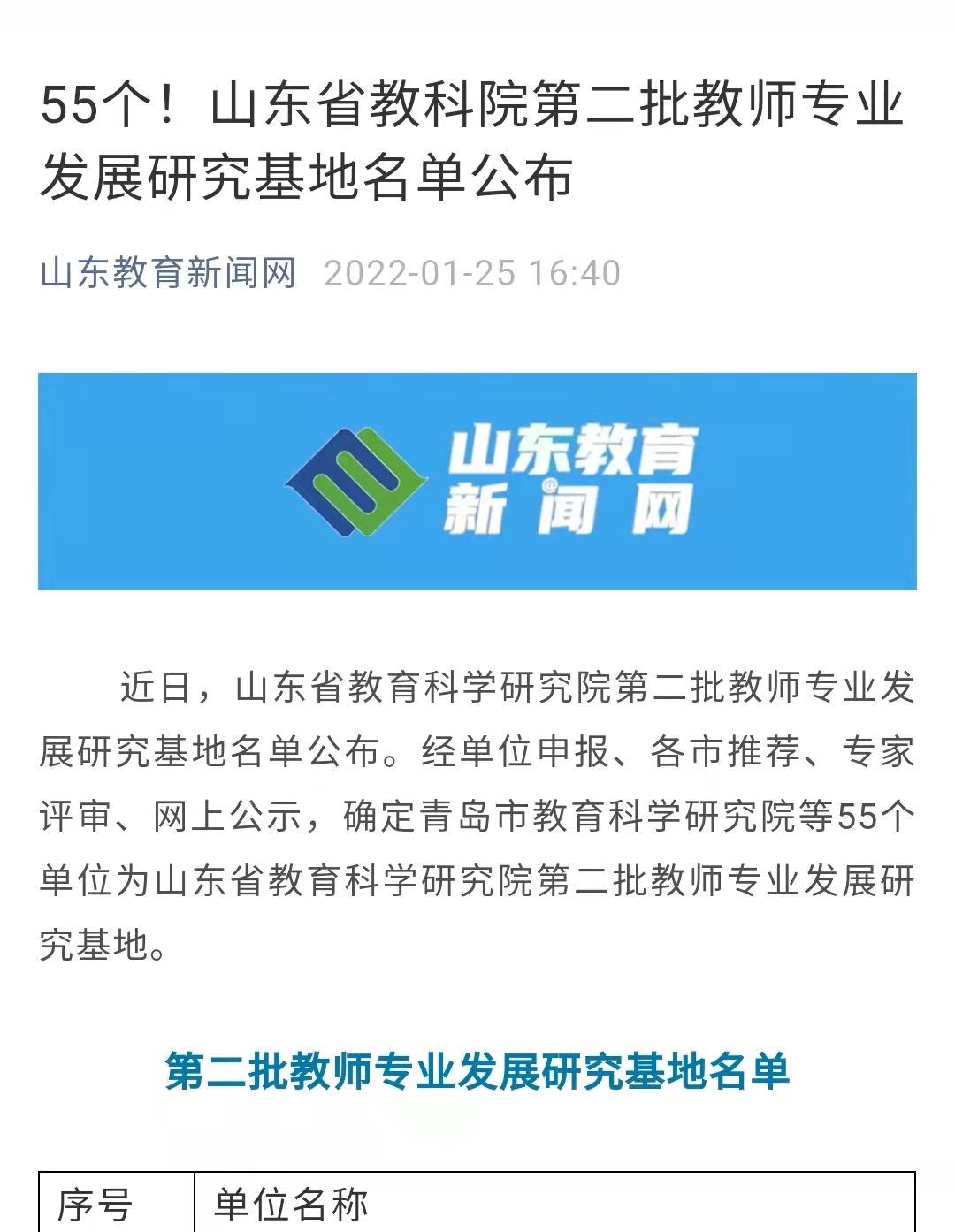 近日,山东省教育科学研究院第二批教师专业发展研究基地名单公布。经单位申报、各市推荐、专家评审、网上公示,确定青岛市教育科学研究院等55个单位为山东省教育科学研究院第二批教师专业发展研究基地。东营市第一中学光荣入选。