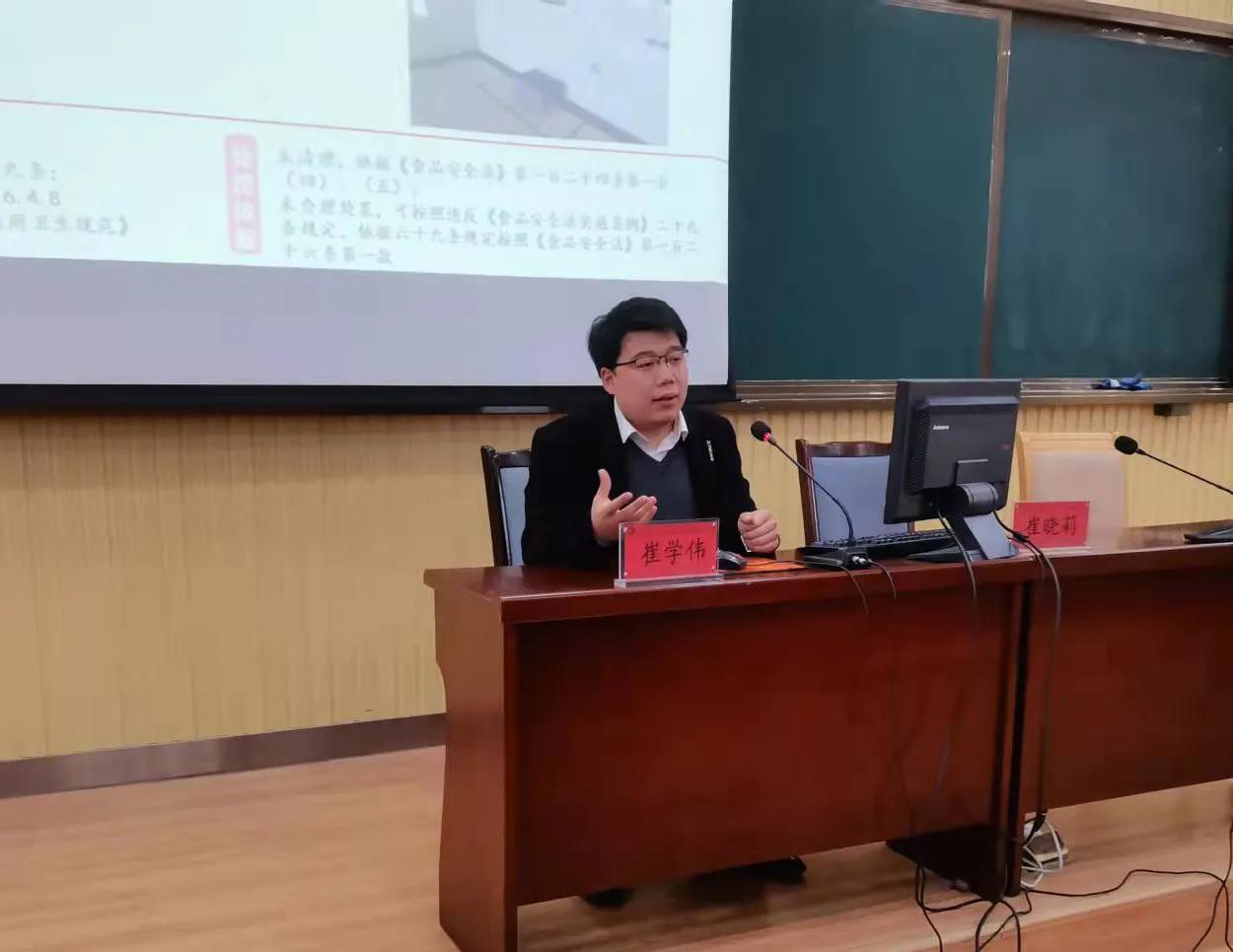 随后,食药科崔学伟科长围绕“如何全方位做好学校食堂食品安全工作”为我校食堂职工进行了近2个小时的培训。培训内容专业、全面、生动,有利于我校食堂职工的安全意识的进一步增强和安全知识的提高。培训完成后,副校长李士刚结合日常管理,对食堂下一步的工作提出了具体的目标和要求。