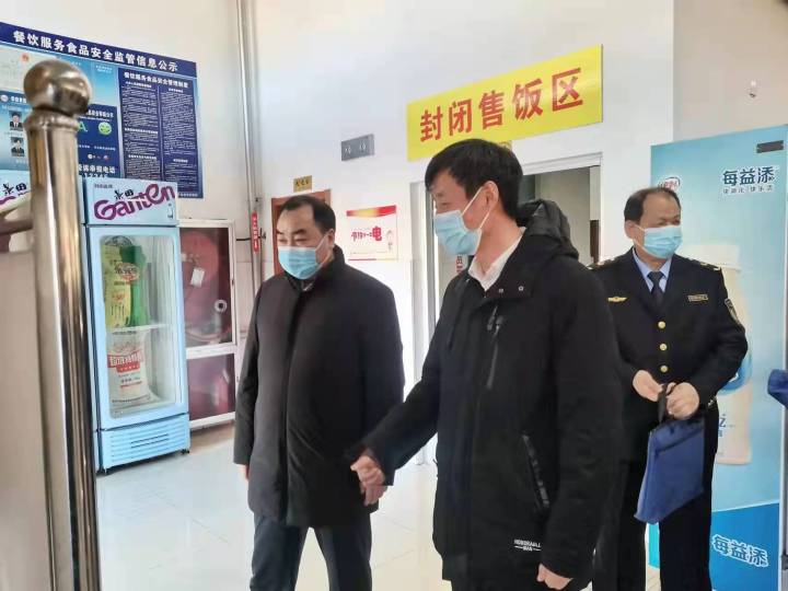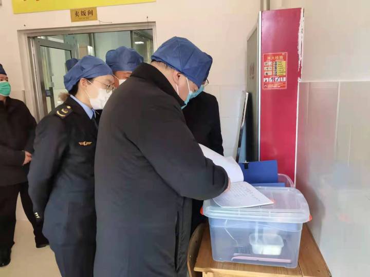 2月21日上午,东营市市场监管局四级调研员宫一忠、餐饮科科长张华一行到我校食堂进行食品安全工作专项督导,重点检查了食品快检室、主副食加工操作间、食品留样以及日常管理资料。李士刚副校长全程陪同,并就我校食品安全工作进行了介绍。