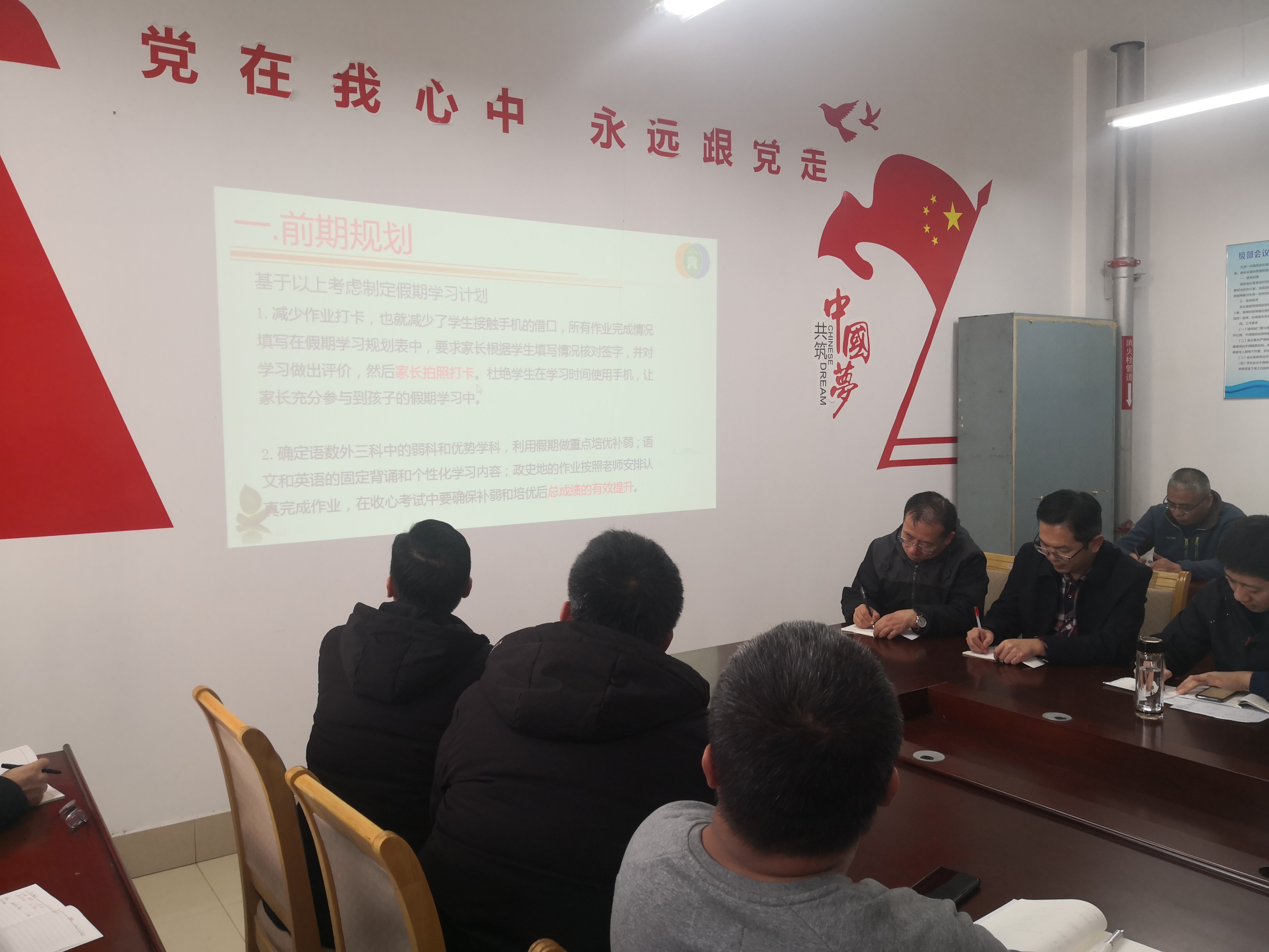 30班班主任王浩瀚老师做了题为“规划、动员、落实”的报告,王老师在报告中总结了假期指导学生学习的法宝:规范电子产品的使用,规范作息时间,有效的检查手段,引导家长积极参与。4班班主任刘玉芬老师做了题为“扬帆起航,行稳致远”的报告,刘老师主要从三个方面总结了假期指导学生学习工作:领导的运筹大格局,团队的合作一家亲,个人落实细致扎实。
