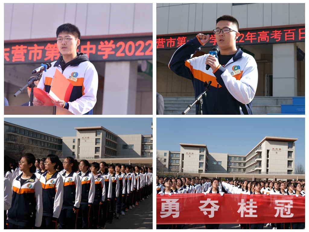 接着,全体高三学生在13班雷人杰同学带领下宣誓:“……百炼成钢,勇夺桂冠;百日冲刺,大学梦圆!”于向平老师领誓,全体高三老师发出铮铮誓言:“……绽放激情,甘于奉献;奋战百日,六月灿烂!”师生们豪迈的誓言响彻云霄。
