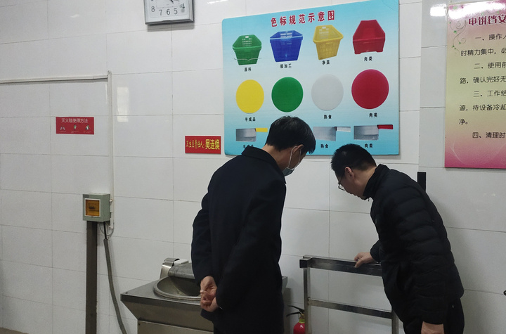 李士刚副校长带领总务处各岗位的负责人,分别对校园供暖泵房、高压变电室、光兴教学楼、食堂、超市进行了场所条件、设施维护、人员管理方面的检查,对检查中发现的问题隐患一一进行记录,现场明确了隐患整改责任人、解决方案和解决时间。