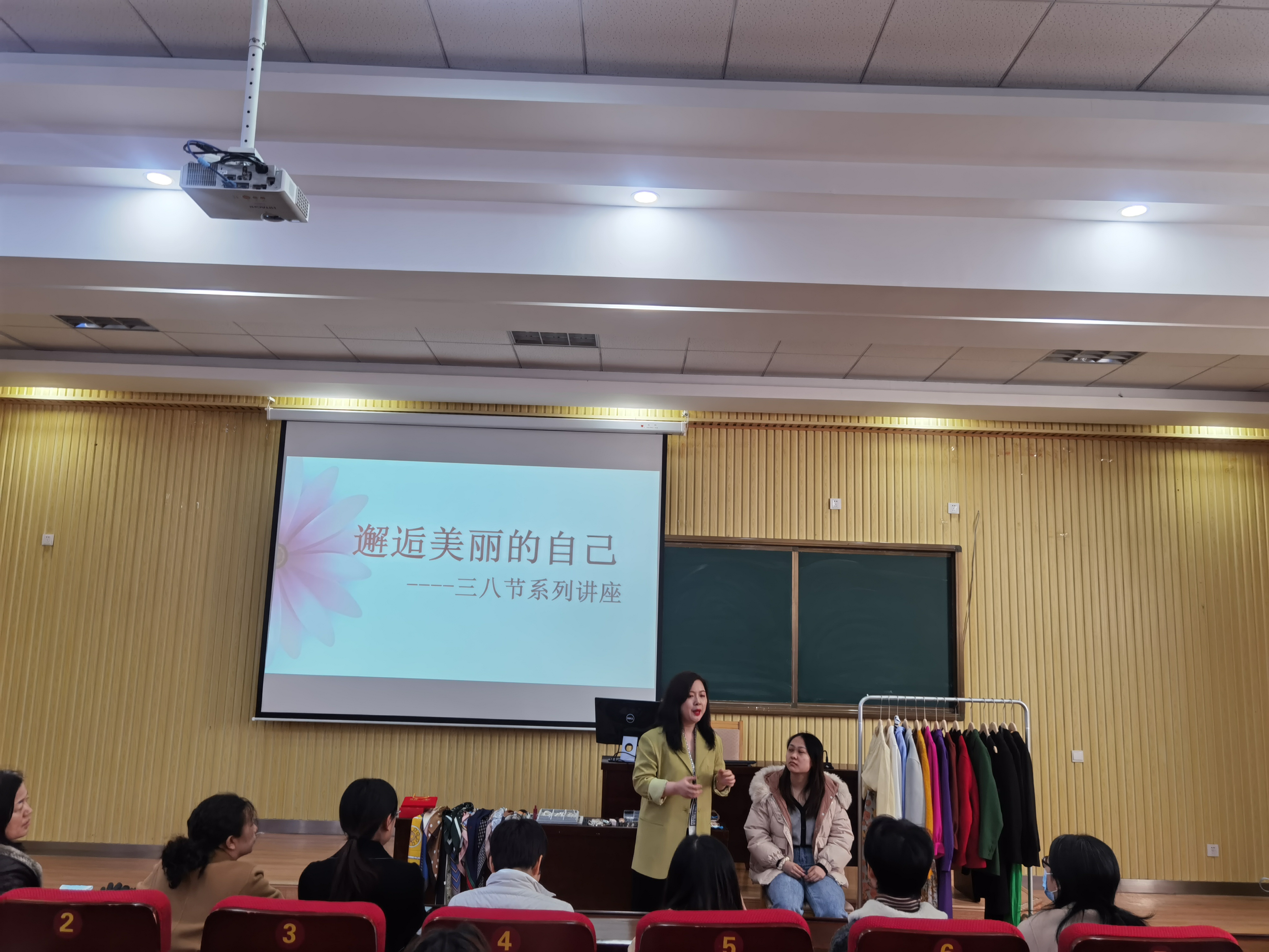 尚丽女士用讲解和现场演示相结合的方式,为女教工展示化妆和服饰搭配的技巧,深受女教职工们欢迎。