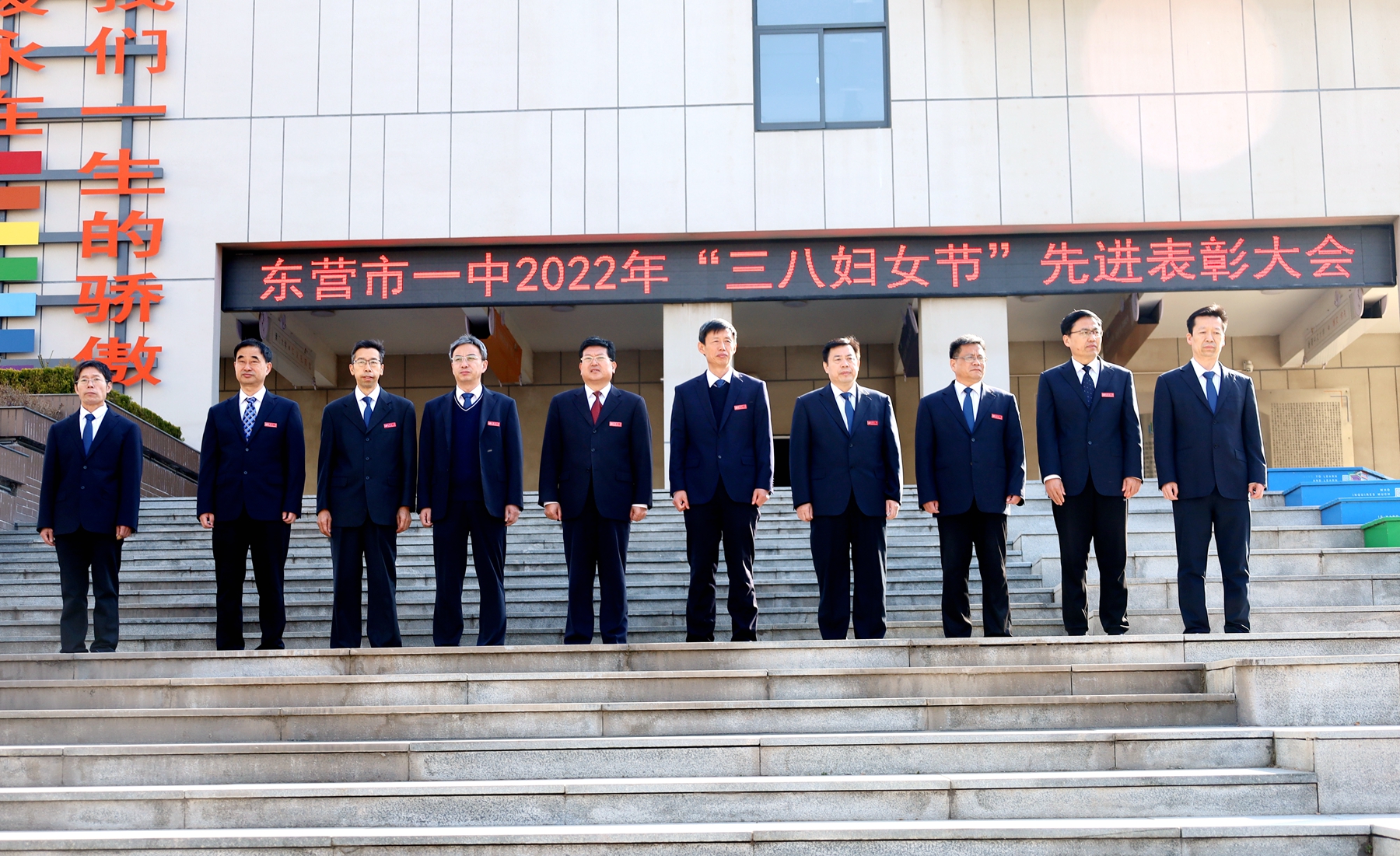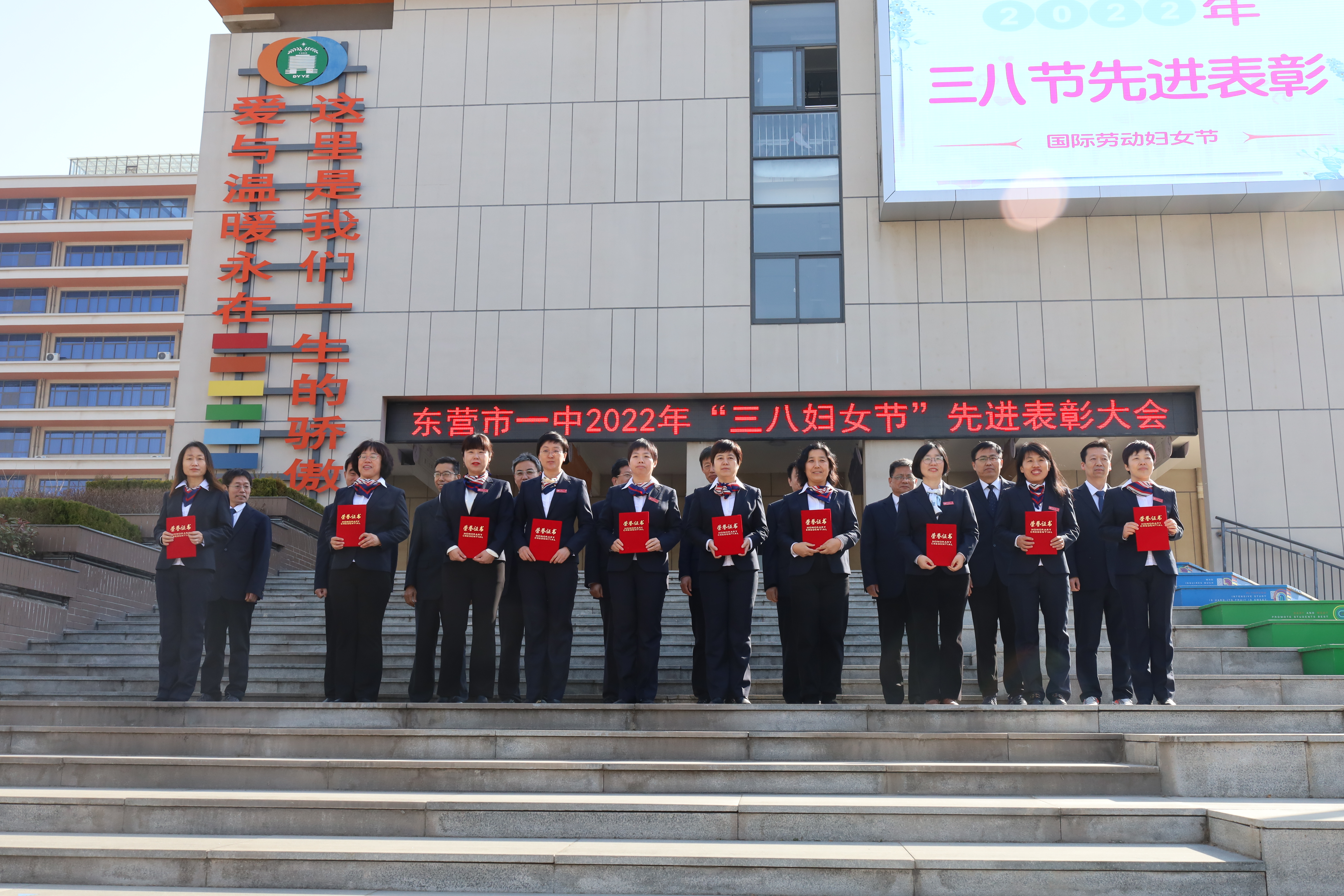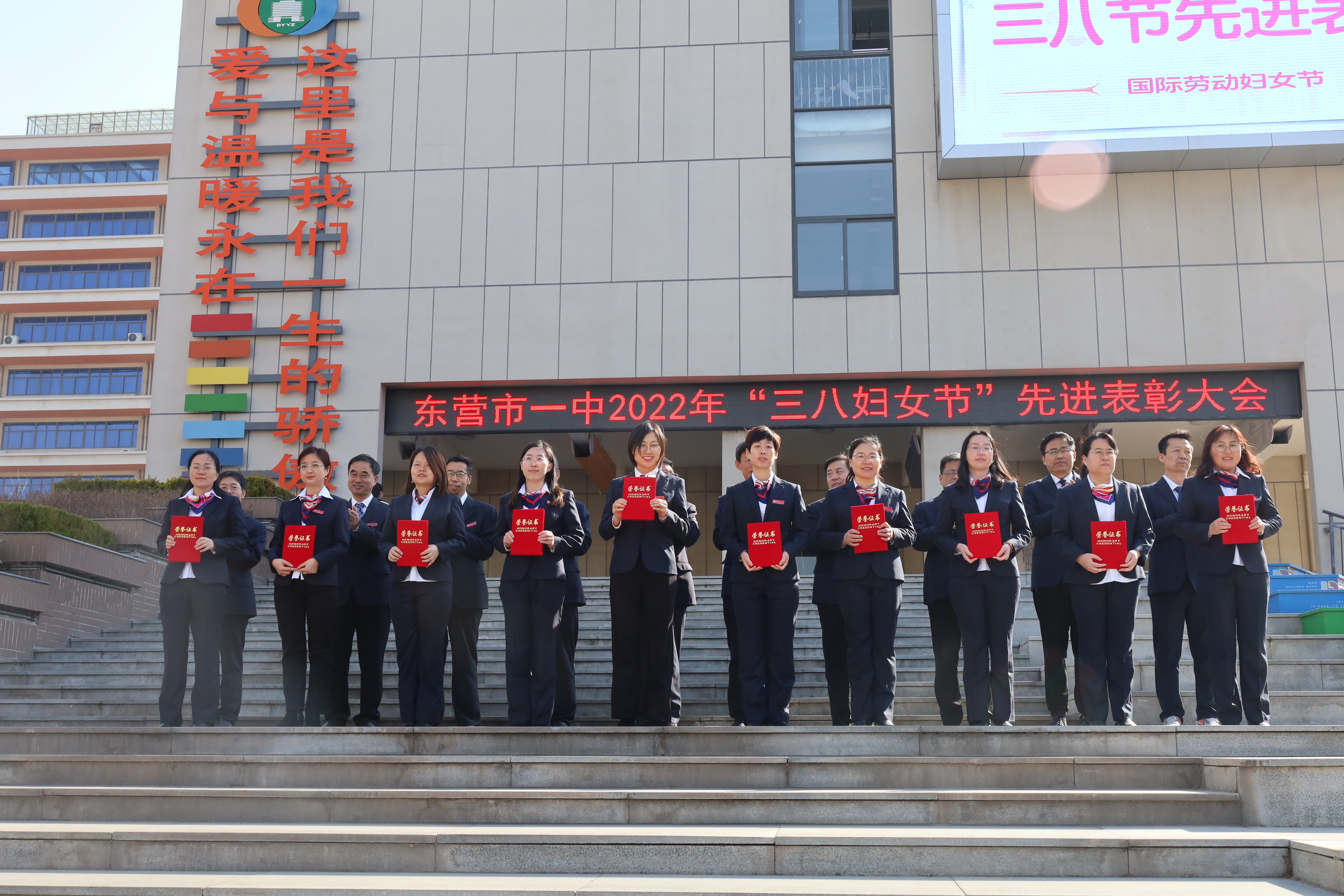 3月7日上午,东营市一中在学校升旗广场隆重举行2022年“三八妇女节”先进表彰大会。党委书记、校长史本泉及部分优秀男教职工代表为获奖女教职工颁发荣誉证书。党委委员、副校长李士刚宣读评选表彰决定。大会由副校长马占武主持。