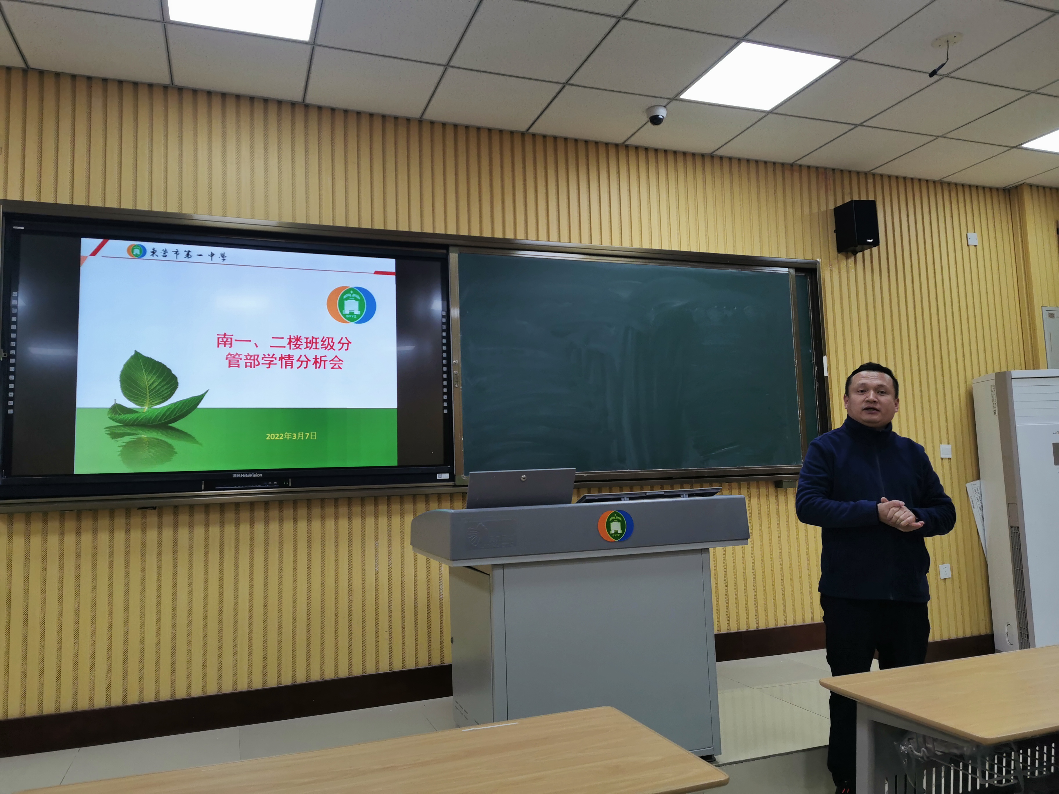各楼层分管部负责人结合所辖班级现状做了指导性总结发言。北一、二层高长征主任强调德育要和适度惩戒有机结合,教育不是无限度的放纵。北三、四层巩滨老师强调各班级要共享共荣,行稳方能致远。南一、二层刘杰助理强调关注学生成绩变化,教学要真抓实干。南三、四层姚继亮主任强调班级之间要交流互助,共同成长。五楼王军主任强调要关注学生个体特点,特长发展和文化课成绩提升并重。