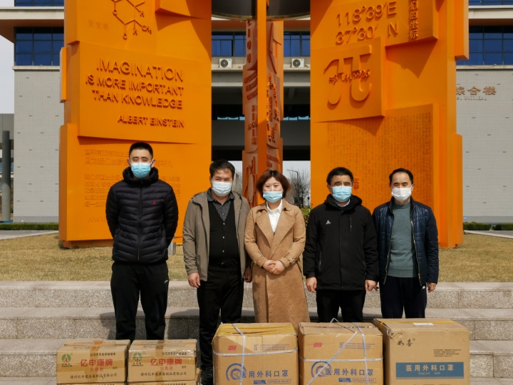 疫情无情人有情,家校同心见真情,携手克难有温情,誓守东营零疫情。近日,新一轮新冠疫情来势汹汹的,山东各地防控形势复杂错综,学校疫情防控面临压力。2022年3月20日,我校高三年级二班(班主任华德志)李芃雨同学的父母(家长李元峰、武秀君夫妇)慷慨解囊、奉献爱心,为学校捐赠防疫物资一宗,包括医用外科口罩9000个、消毒液640瓶,以实际行动支持学校防疫工作,倾心助力大美一中发展。