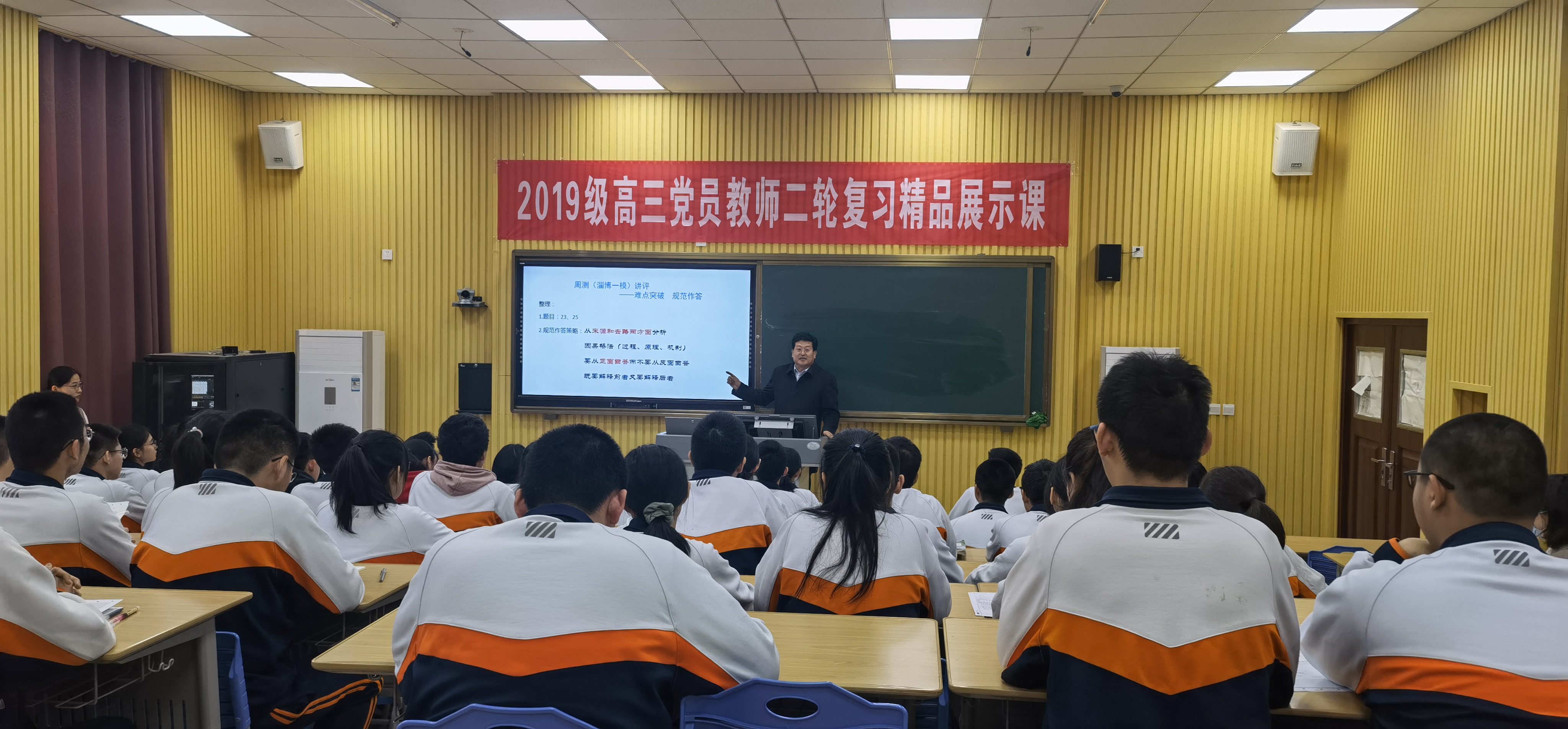 为了充分发挥党员教师的先锋模范作用和业务示范作用,通过党员教师讲授“示范课”,全体教师观摩学习,开展教学交流,提升业务水平,2019级部开展了“高三党员教师高考二轮复习精品展示课”活动。校长史本泉同志和副校长马占武同志到现场听课指导。