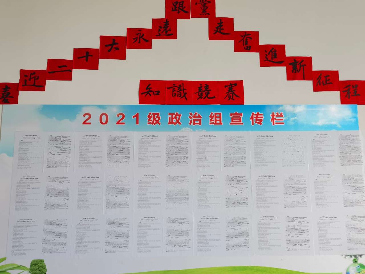 活动统一组织,全体学生踊跃参与。从竞赛名称、主题,到竞赛试题、具体方案及后续工作(展板的设计、粘贴),政治组精心组织,细致安排。经过评选,六十余名同学荣获一等奖,部分优秀试卷展示在宣传栏里,吸引了众多学生前来观看、学习,充分落实了内化于心、外化于行的教学效果。