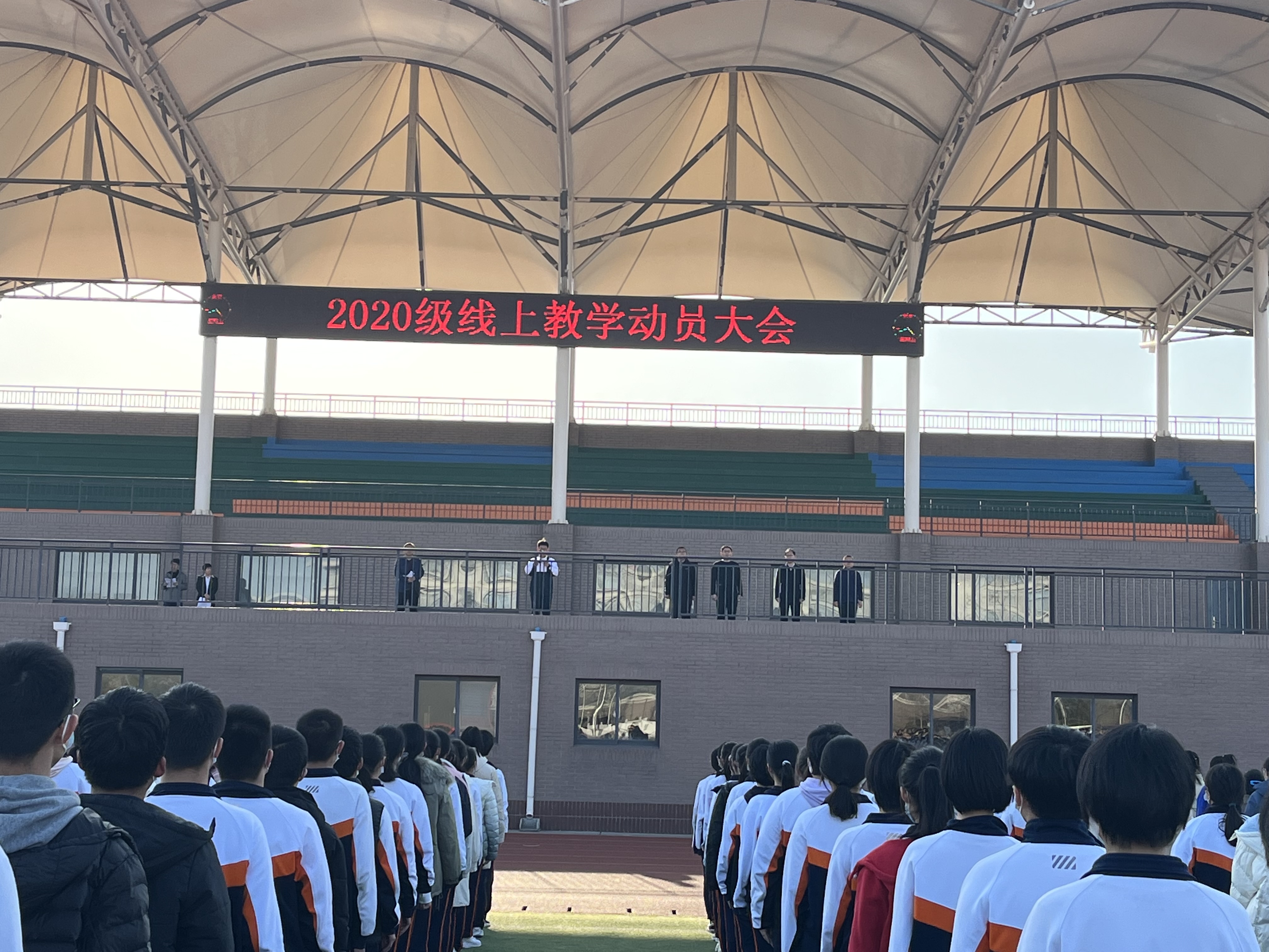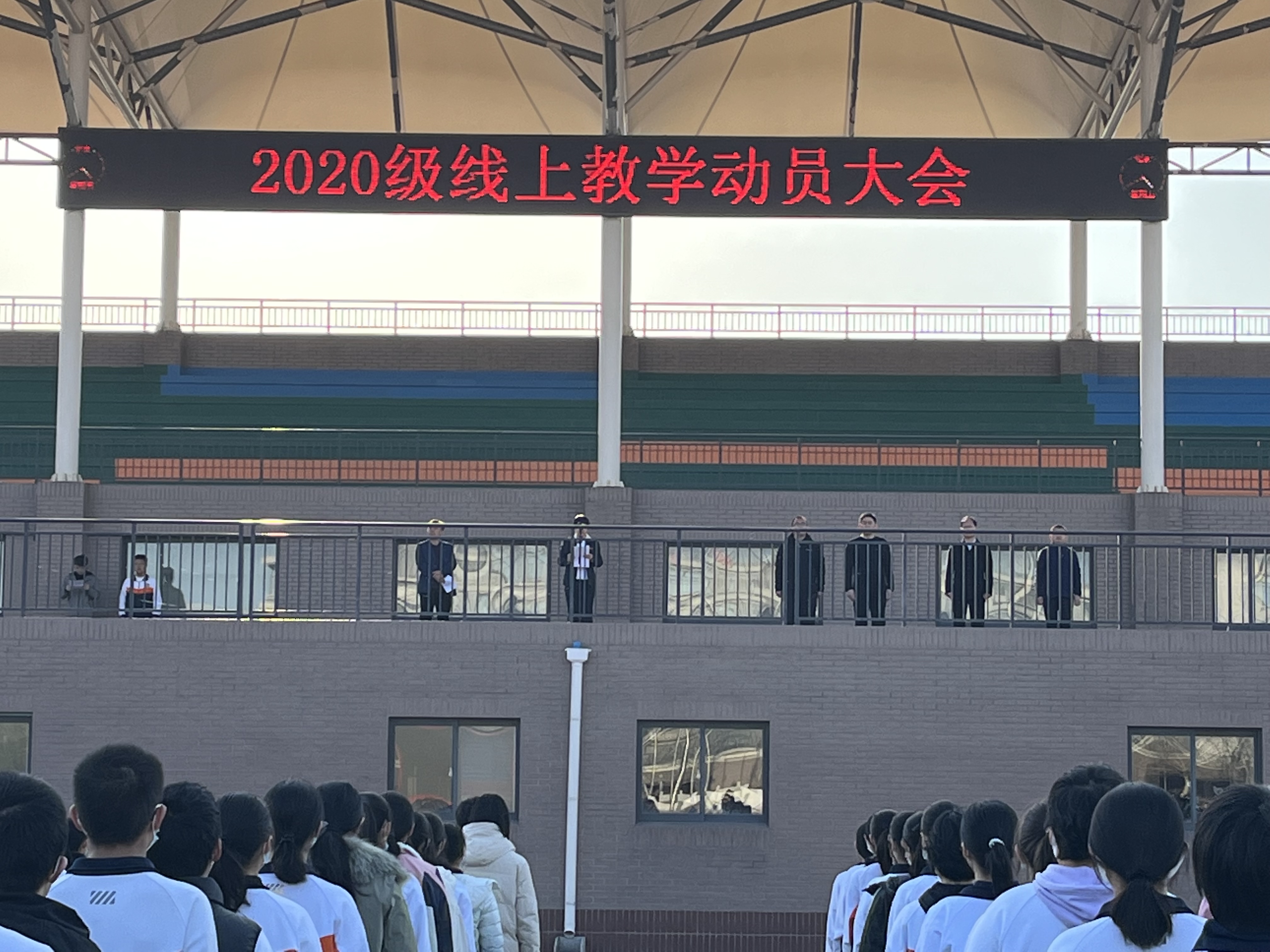 4月2日,市一中2020级部在操场召开了线上教学动员大会。会上学生代表、教师代表、级部程志伟主任先后发言。