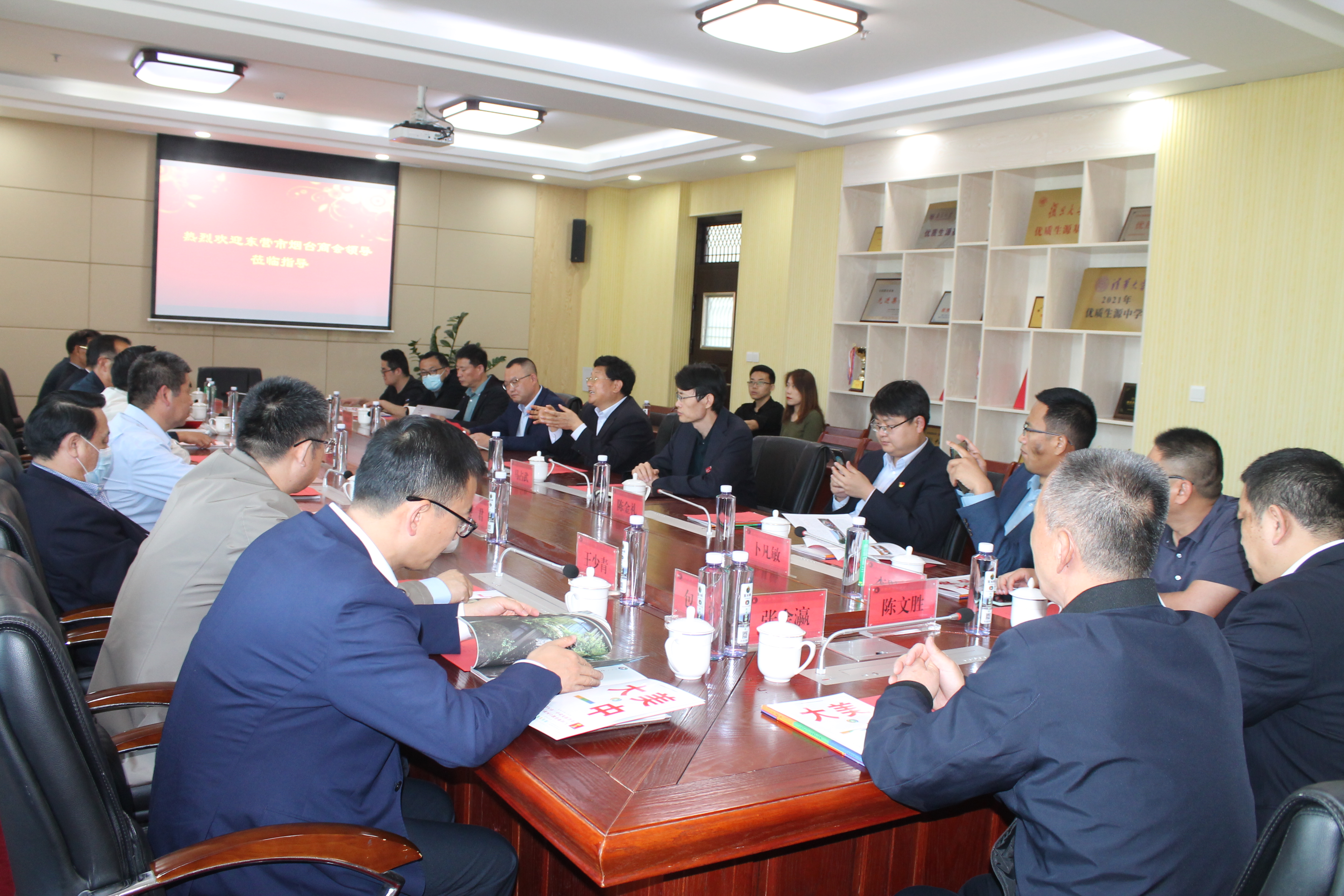 5月13日下午,东营市烟台商会一行18人,在会长、山东海云房地产开发有限公司董事长栾庆民的带领下走进市一中,向市一中捐赠防疫物资。史本泉校长热情接待了来访客人,并与客人在学校第一会议室进行了座谈交流。副校长马占武一同出席活动。