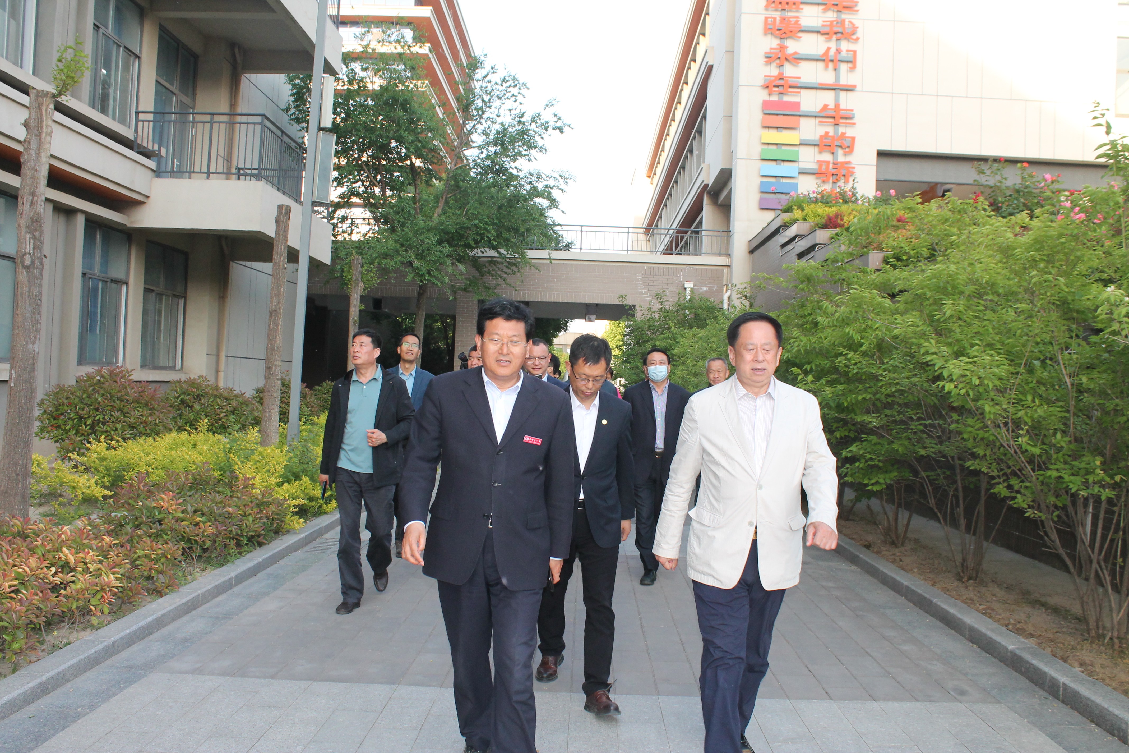 捐赠仪式之后,栾庆民会长一行在史本泉校长的带领下,参观了市一中校史馆、艺术馆、党建学馆、国际部、心指中心和校园景点,并一同观看收听了校歌和文化宣传片。栾会长一行对东营市一中的教育教学成绩、校园文化建设、学校管理水平给予了高度评价。