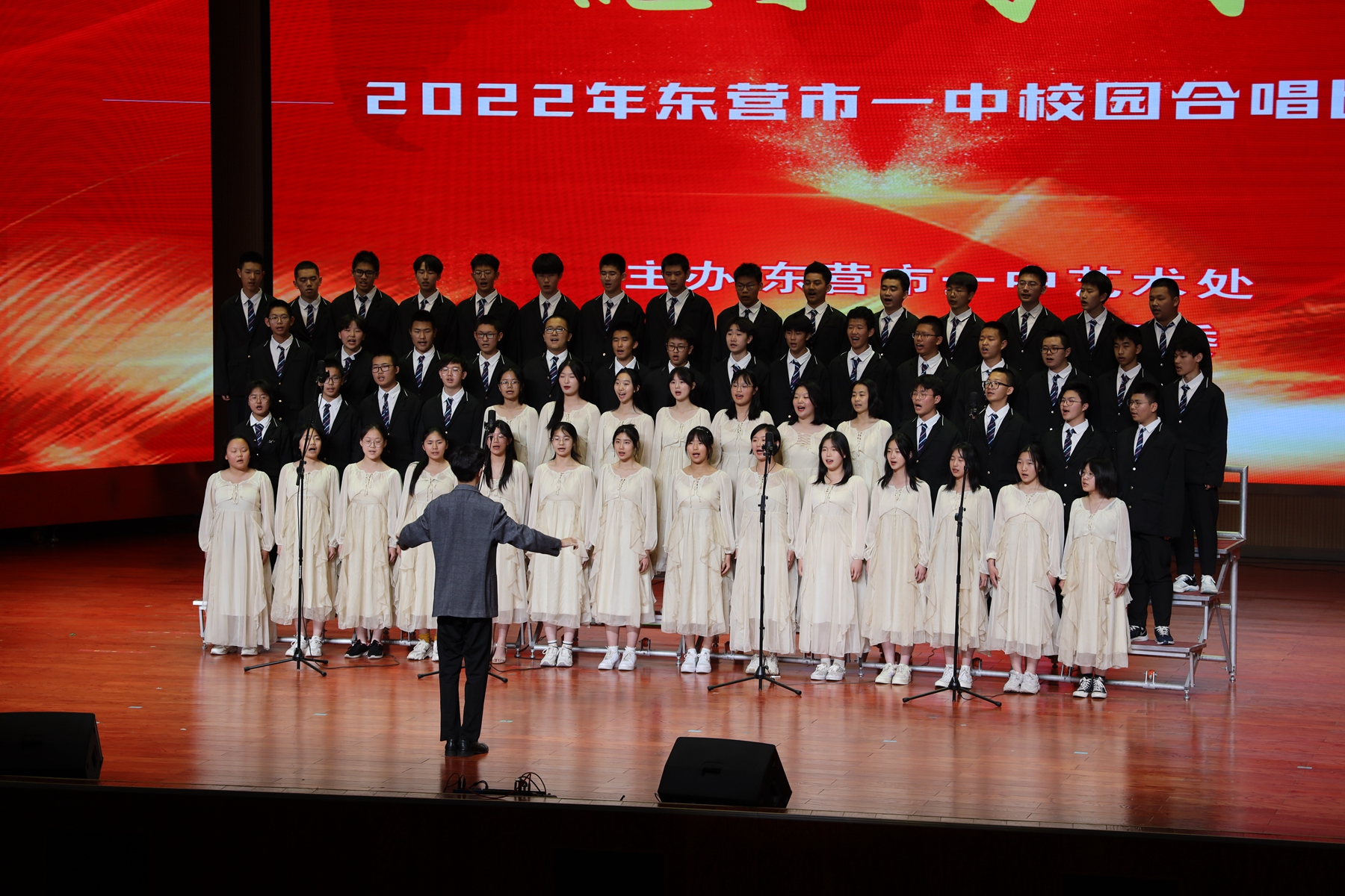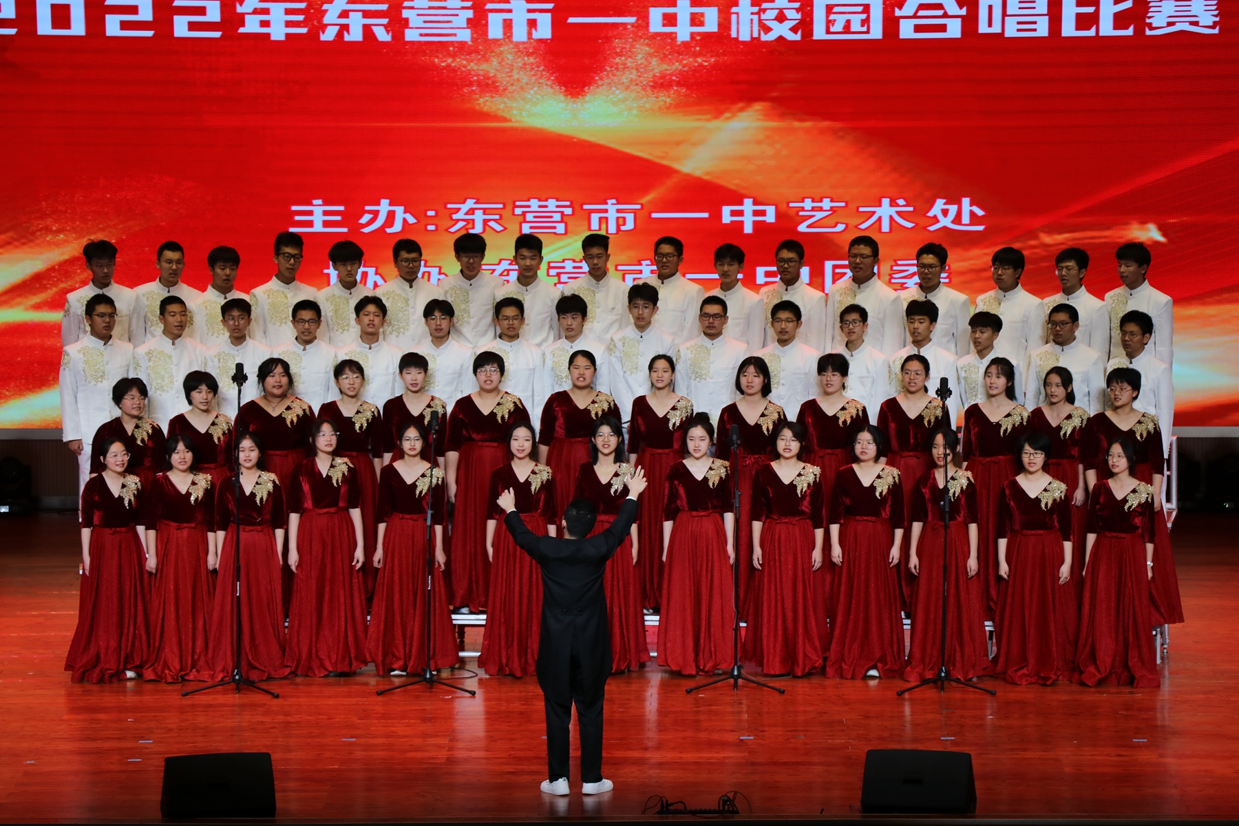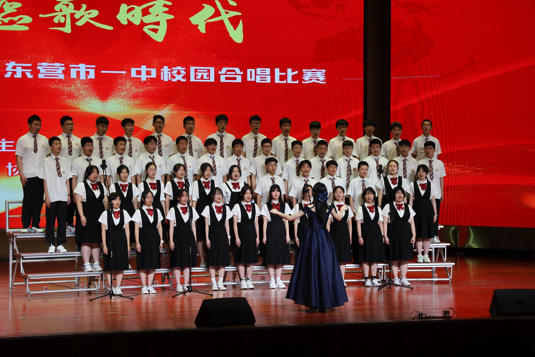 5月15日上午和下午,“讴歌时代------校园合唱比赛”分高一、高二两个专场进行。同学们豪情放歌,唱出了一中学子团结一致、勇敢拼搏、昂扬向上的精神风貌。