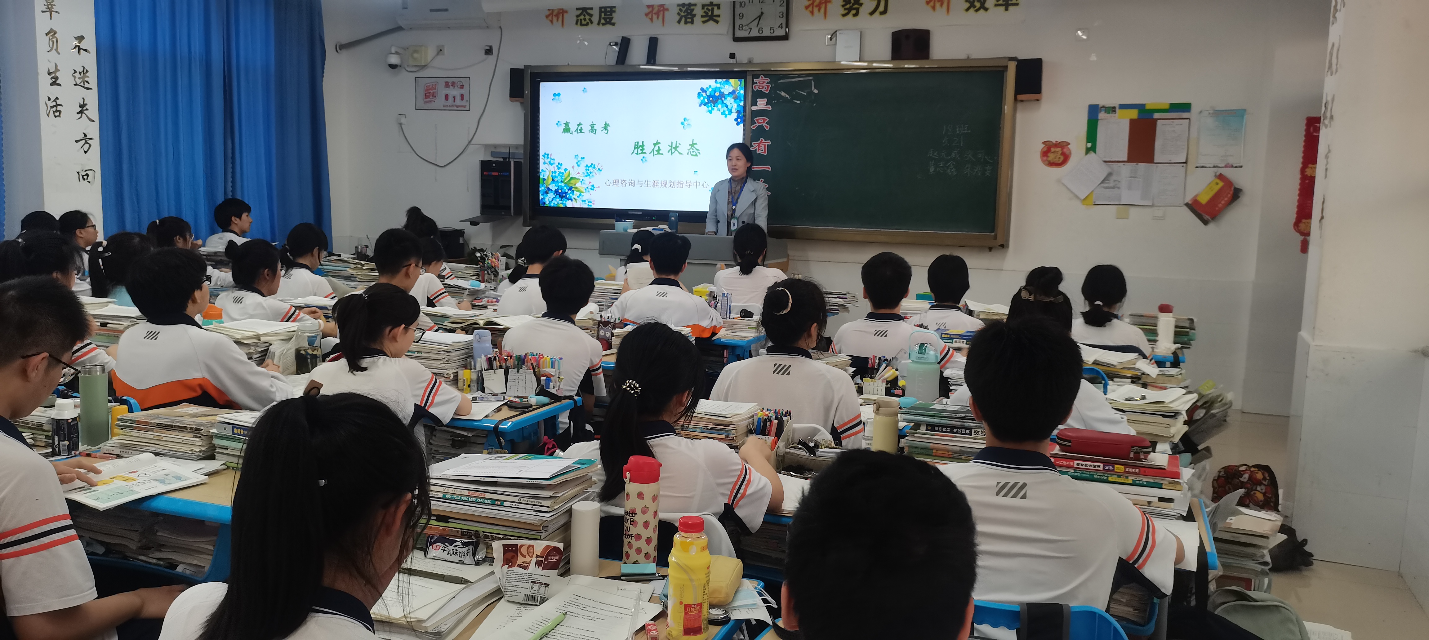 距离高考还有15天,为了缓解同学们的心理压力,调整大家的复习迎考状态,提高复习效率,使大家以最佳状态迎接高考。5月21日晚,学校心理中心的十几位家长志愿者为2019级高三全体学生开展《赢在高考 胜在状态》考前心理调适与辅导活动,以帮助同学们矫正备考心理,缓解考前心理压力,提升备考效率。
