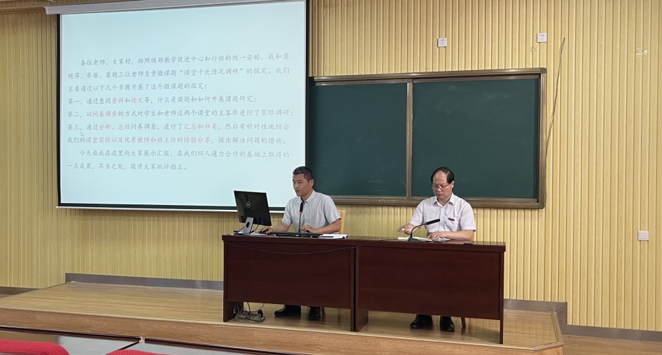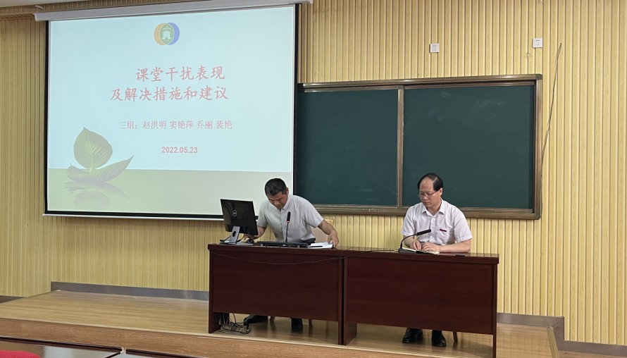 5月23日,2020级在阶梯教室举行了教师知行班第2期汇报会,全体教师参会。赵洪明老师代表知行班3组作了《课堂干扰表现及解决措施和建议》的报告。