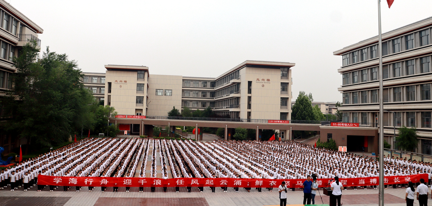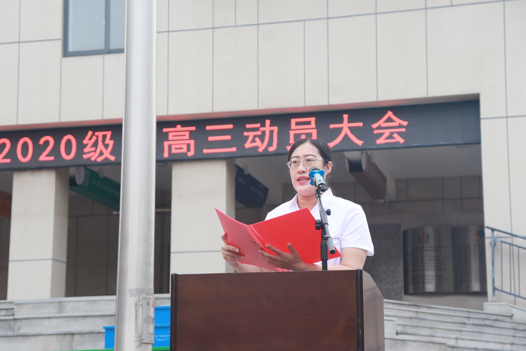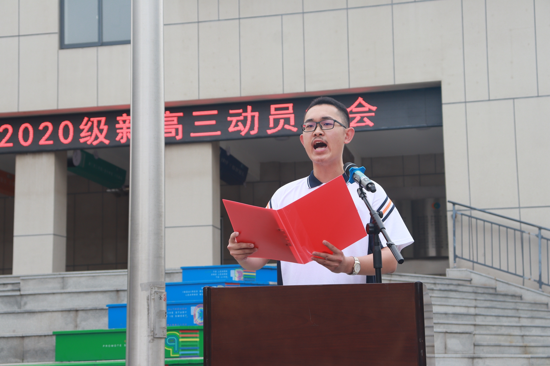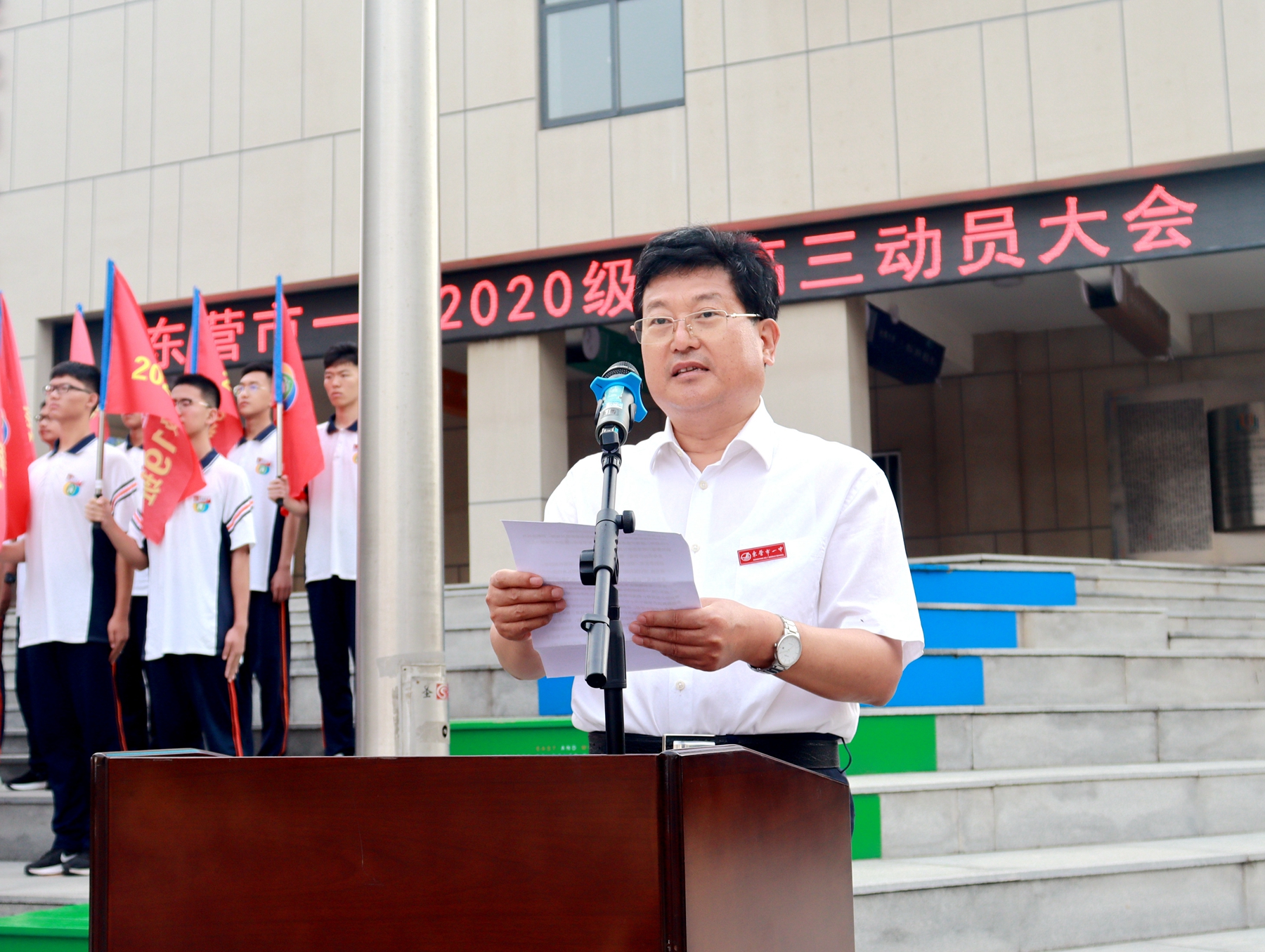 6月12日,迎着清晨的朝阳,2020级全体师生隆重集会,在升旗广场举行了新高三动员大会。大会由马占武副校长主持,史本泉校长、2020级家委会代表、学校中层领导干部参加了大会。