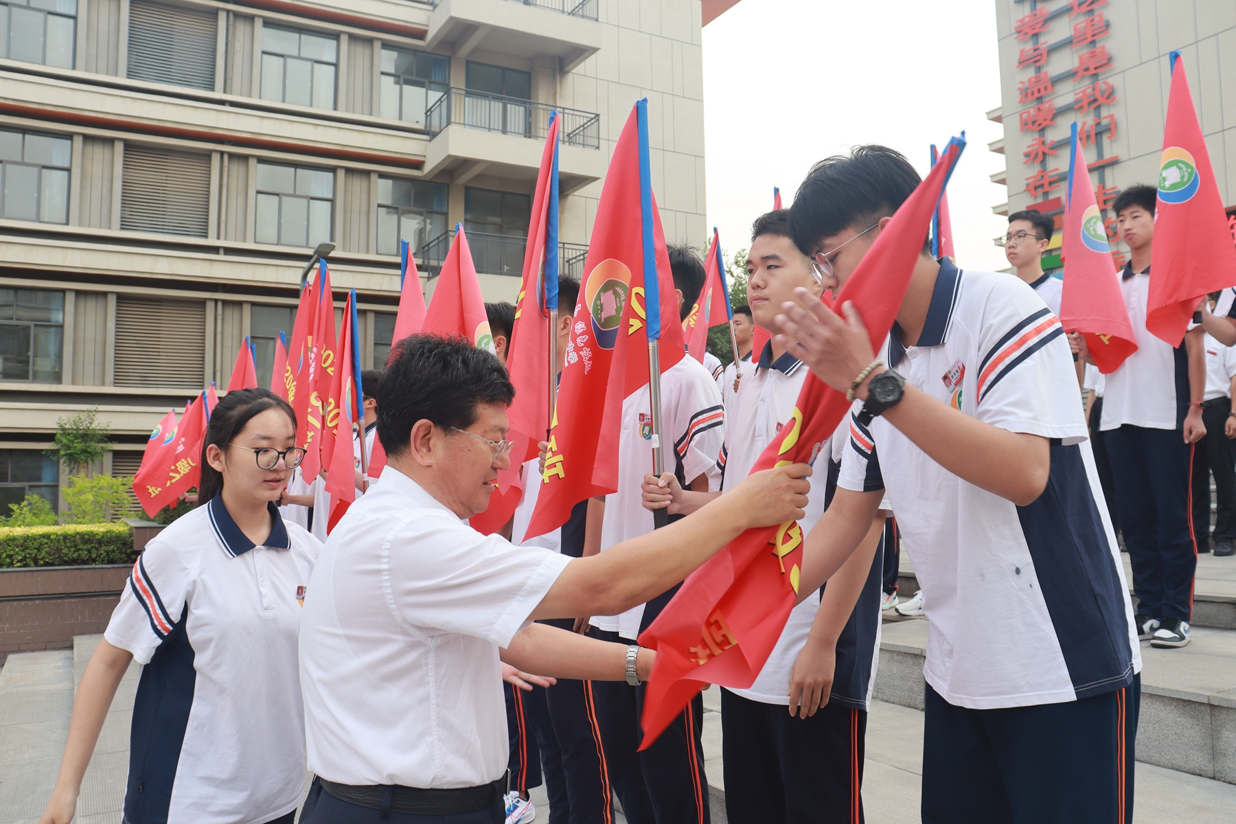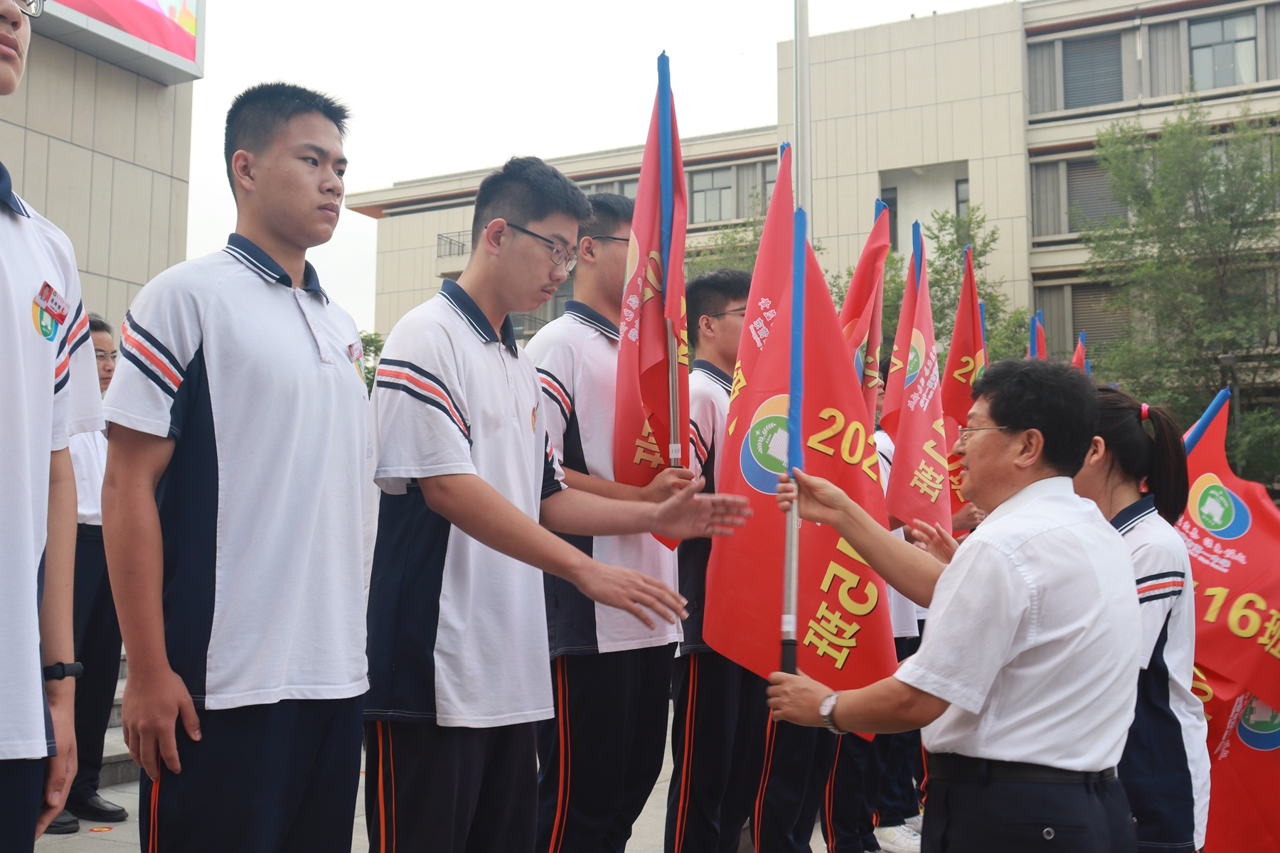 会上史校长给每个班级的学生代表颁发了班旗,学生代表孙晓涵、教师代表张嘉慧老师先后发言。孙晓涵同学代表2020级全体同学郑重承诺:坚守必胜信念,永不言弃;锁定目标大学,全力奋斗进取;紧跟老师节奏,踏实备考;勤于自我反思,努力追求卓越。张嘉慧老师代表2020级部全体教师郑重宣誓:聚焦高考,深耕细研,全力以赴地充实同学们的知识行囊;怀抱细心、爱心、耐心,用真情点燃心灵的火种。
