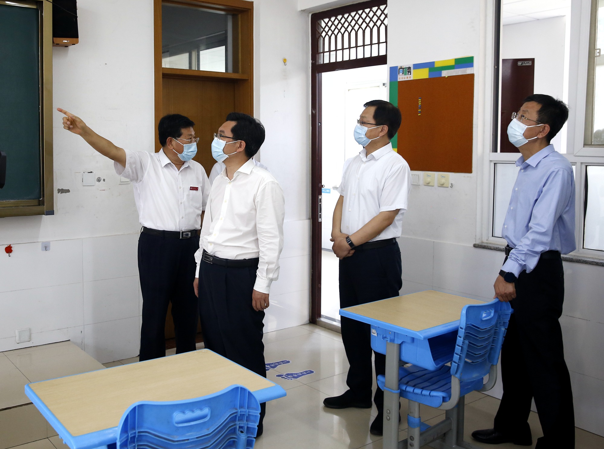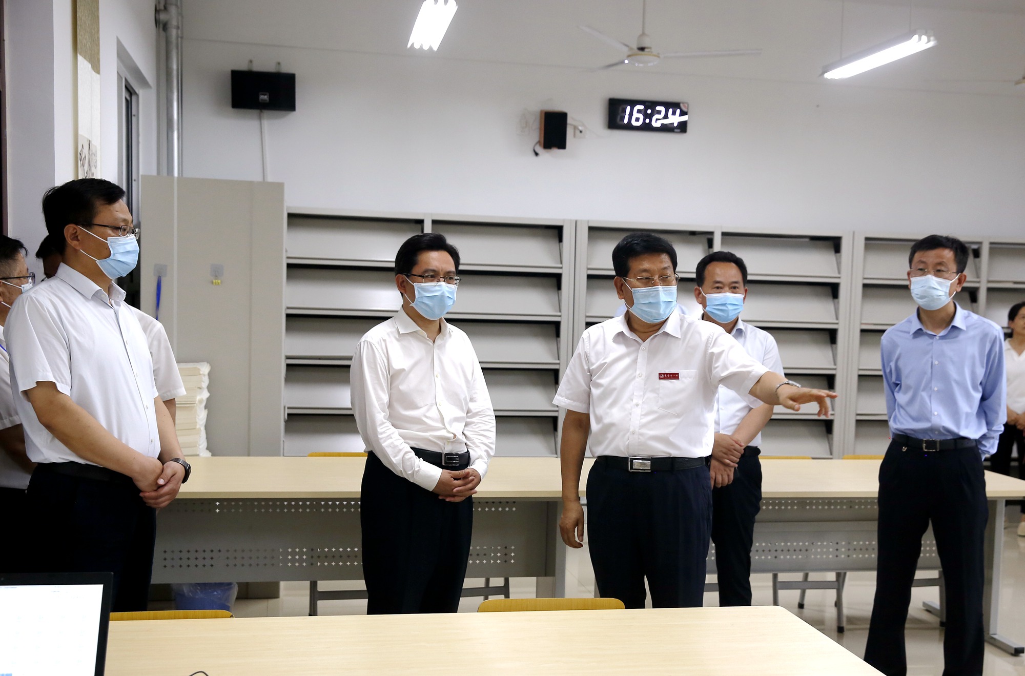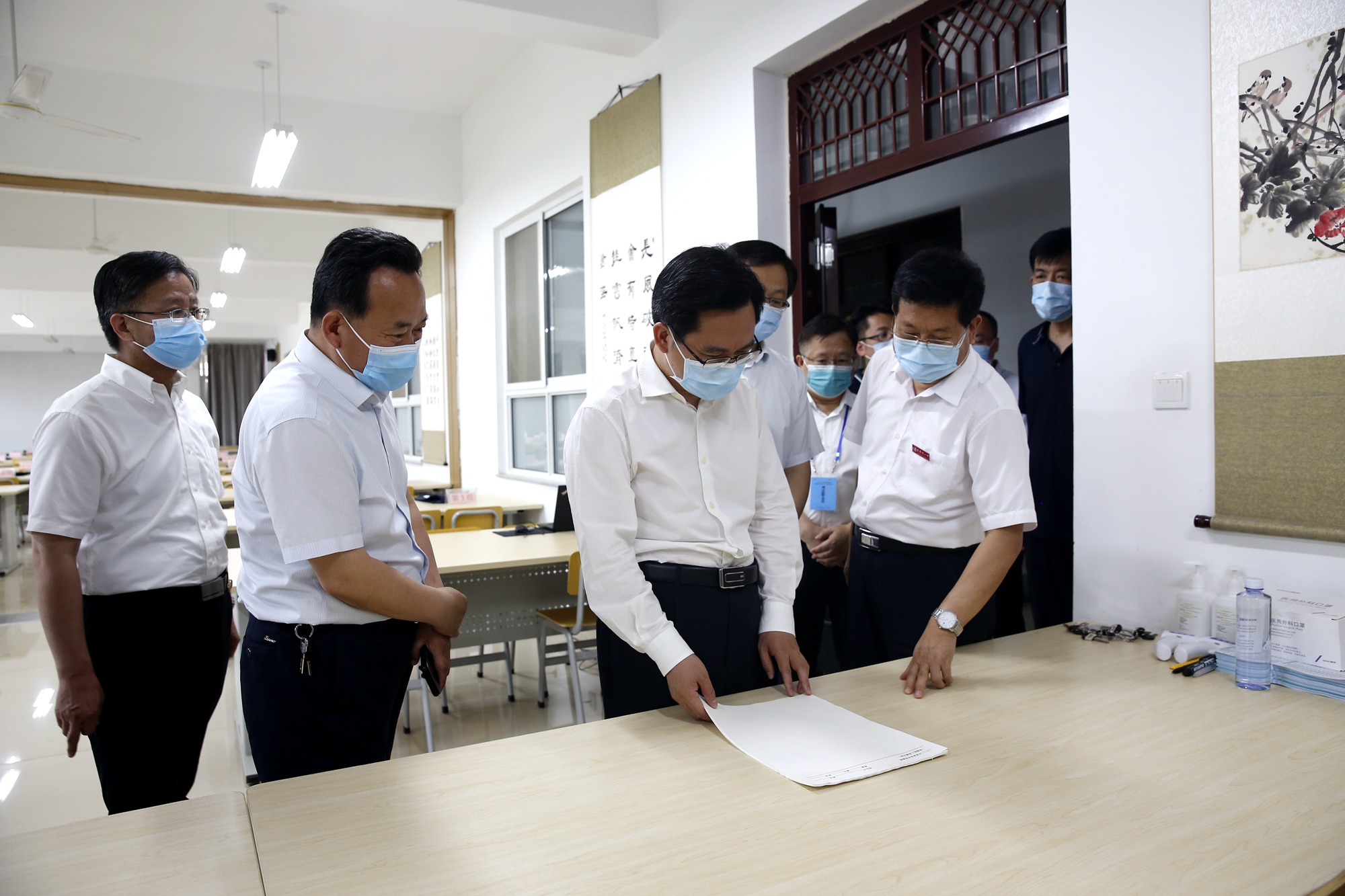 陈必昌先后来到考点监控中心、考务室、保密室、考场和留观室等进行检查,走进国际部和心理咨询中心,听取了史本泉校长关于疫情防控、考点设置、考务工作安排、高考监控和校园安全保卫等工作的汇报。对市一中紧张有序的高考组织工作给予了肯定,对学校优美的校园环境和优异的办学成绩给予了赞誉。