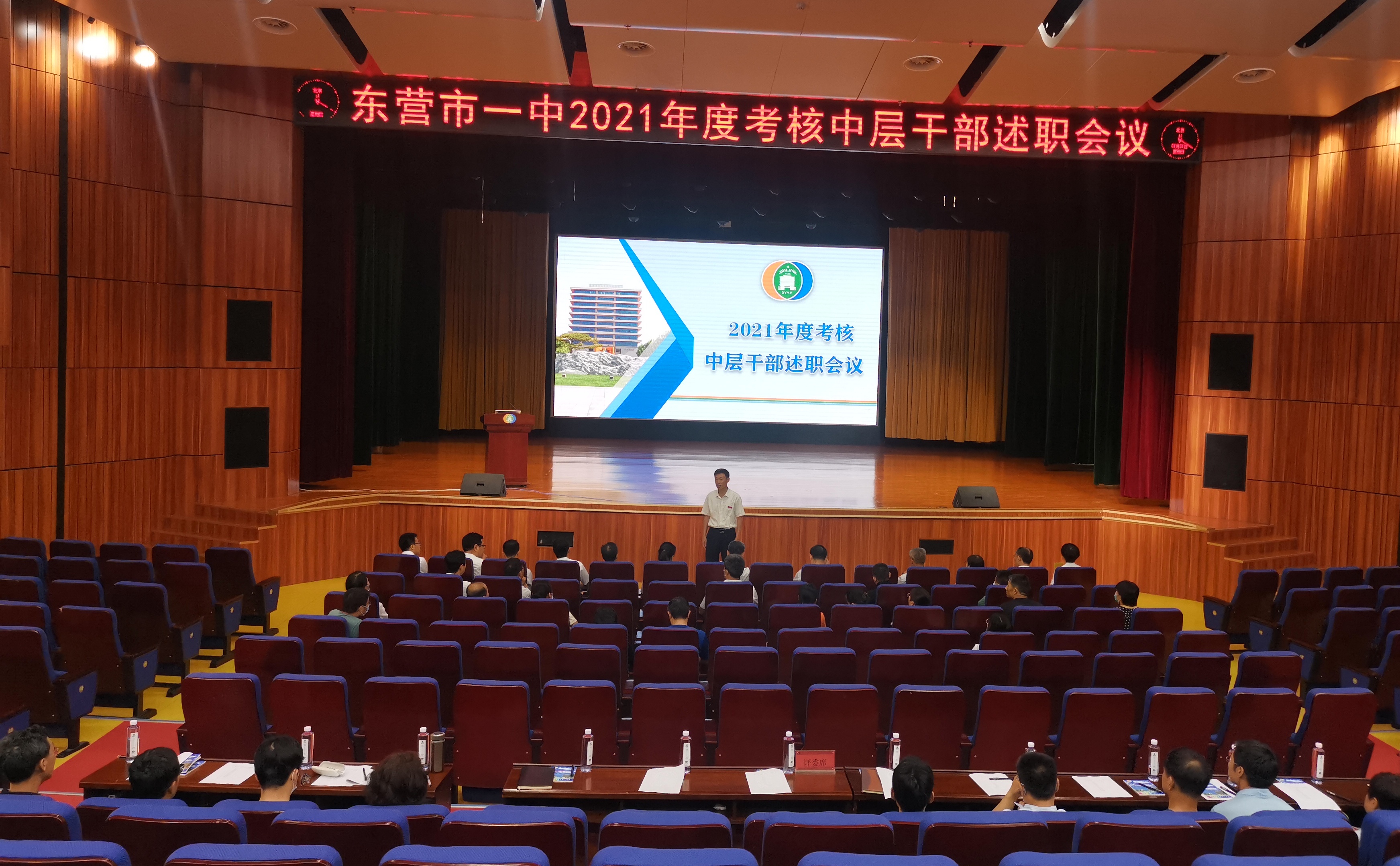 为切实做好2021年度教职工考核工作,根据上级部门文件精神和《东营市第一中学2021年度教职工考核的通知》要求,学校中层干部考核述职会议于6月20日下午在道德讲堂举行。