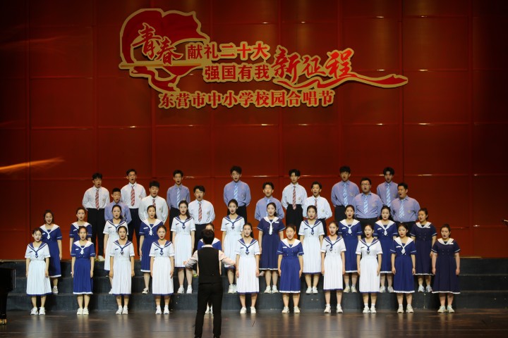 6月24日下午,“青春献礼二十大 强国有我新征程”东营市中小学校园合唱节展演活动在雪莲大剧院隆重举行。我校高一·20班班级合唱团经过激烈比赛,从全市59支队伍中脱颖而出,成功入选展演活动,精彩亮相于雪莲大剧院的舞台,并推荐参加省级评选。