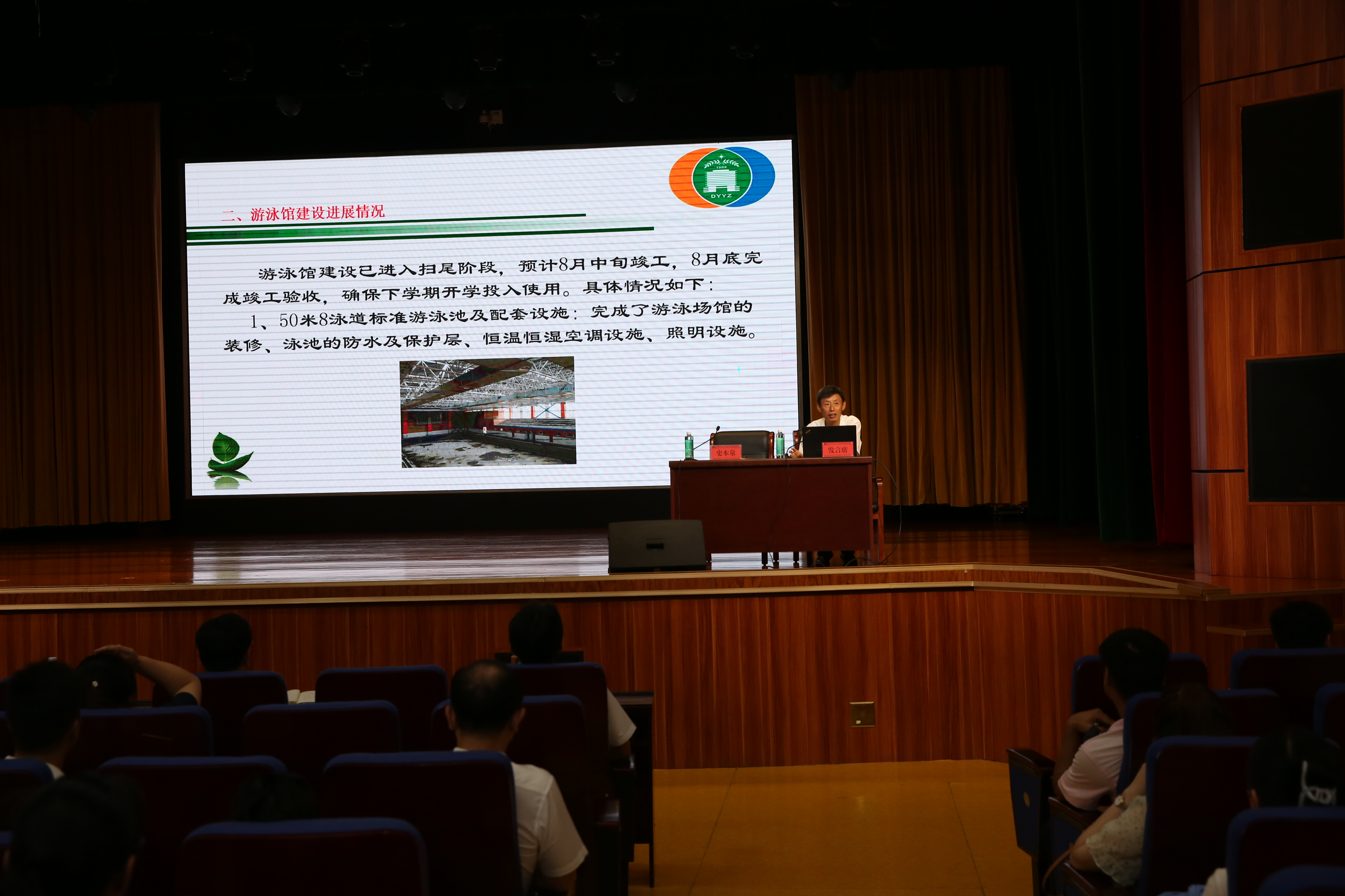 会上,2020级新高二、教务处、艺术处三位主任,依次作为级部和部门代表,对本学期工作进行总结汇报;副校长马占武总结了2022年高考情况,通报了2022年高考所取得的历史性的卓越成绩;副校长李士刚通报了游泳馆建设推进情况及假期维修工作安排。